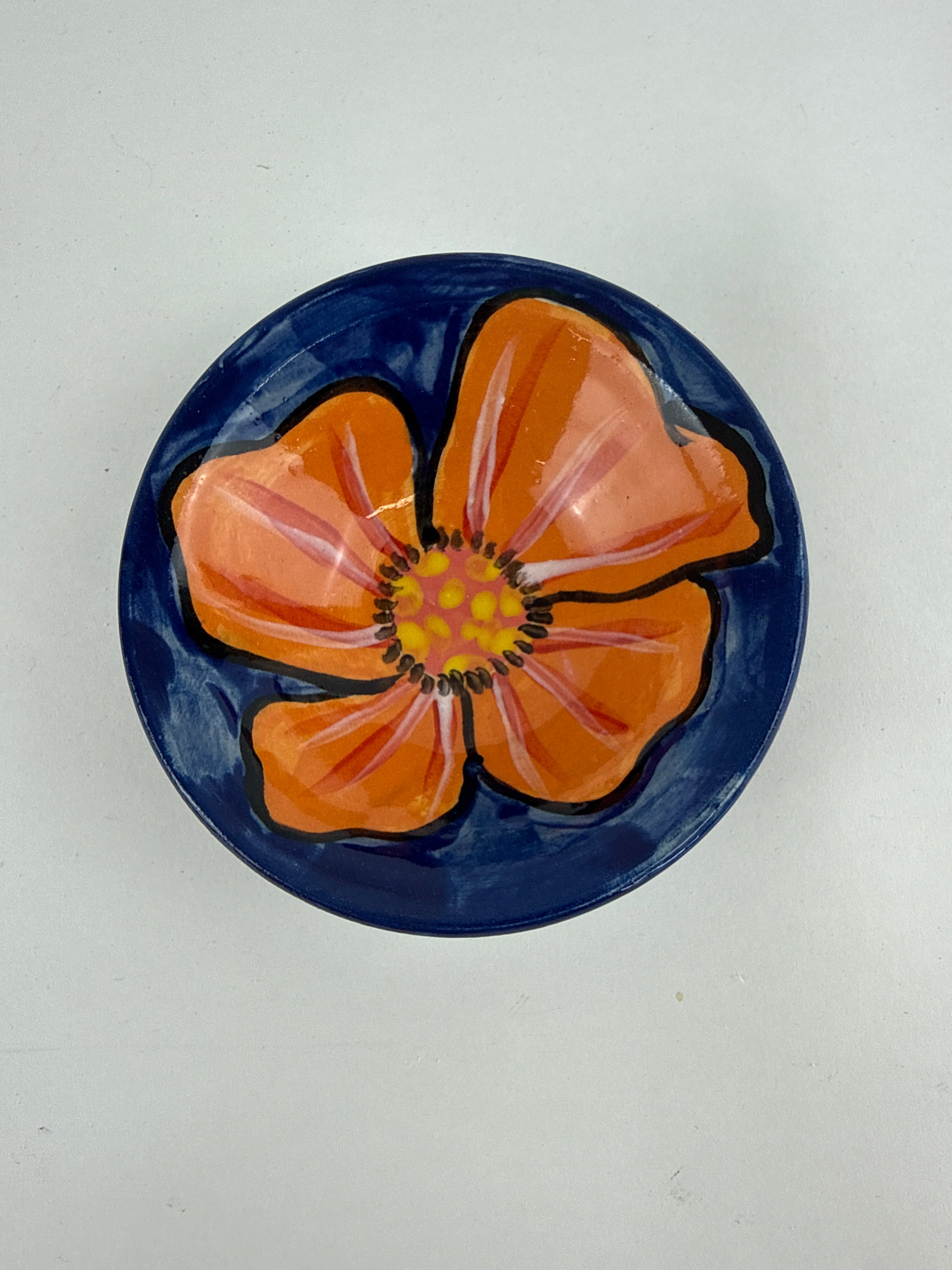 This Dish has been thrown out of SWE clay and decorated in underglaze colours with a clear glaze.