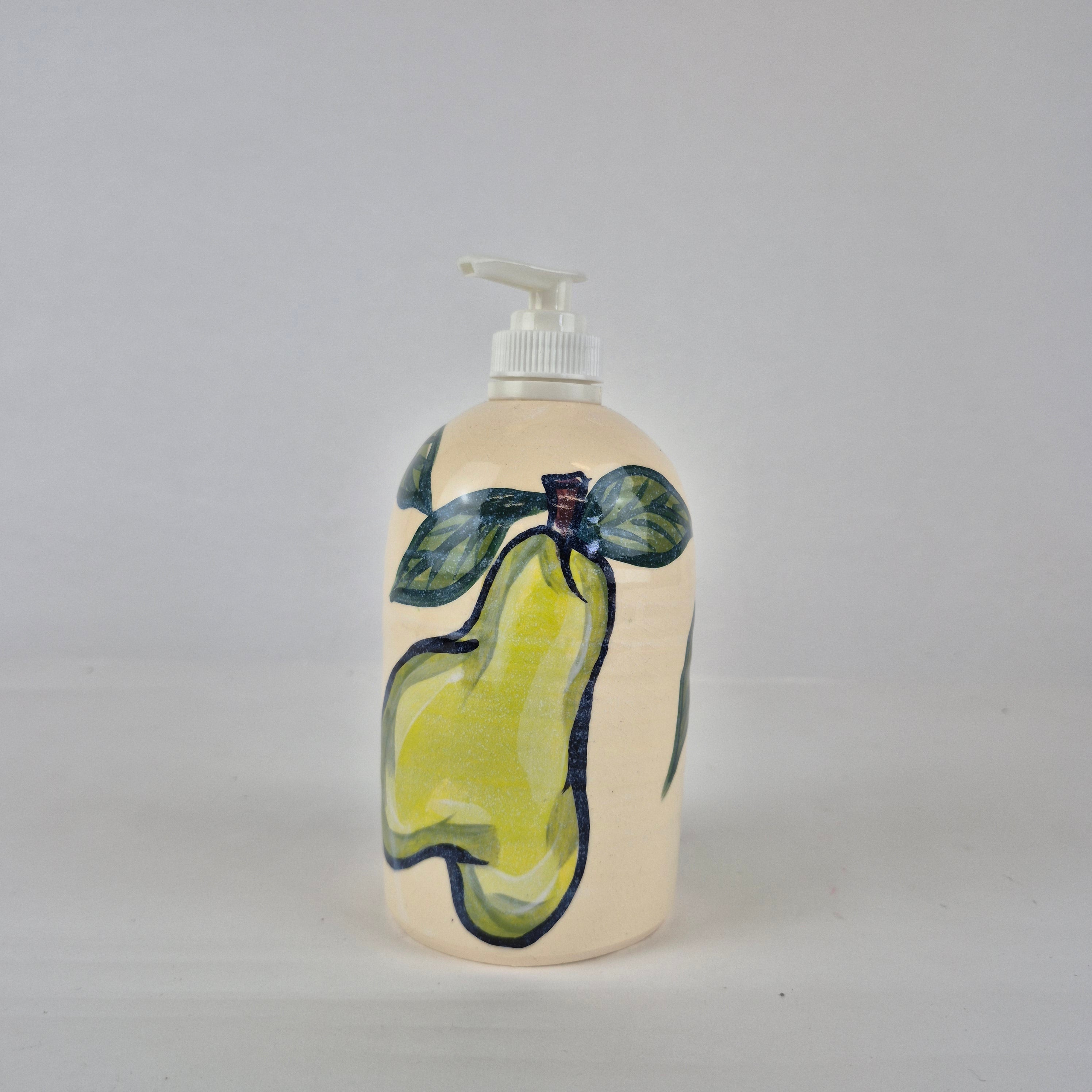 Bathroom Soap Dispenser been thrown out of SWE clay and decorated in underglaze colours with a clear glaze.