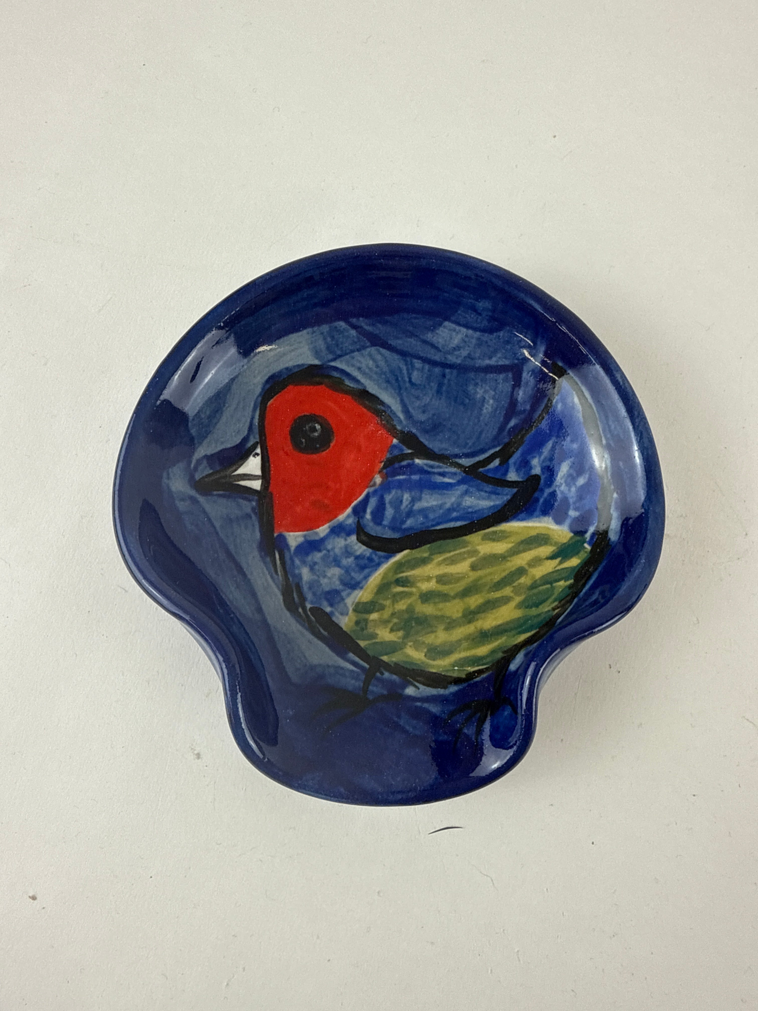 This Dish has been thrown out of SWE clay and decorated in underglaze colours with a clear glaze.