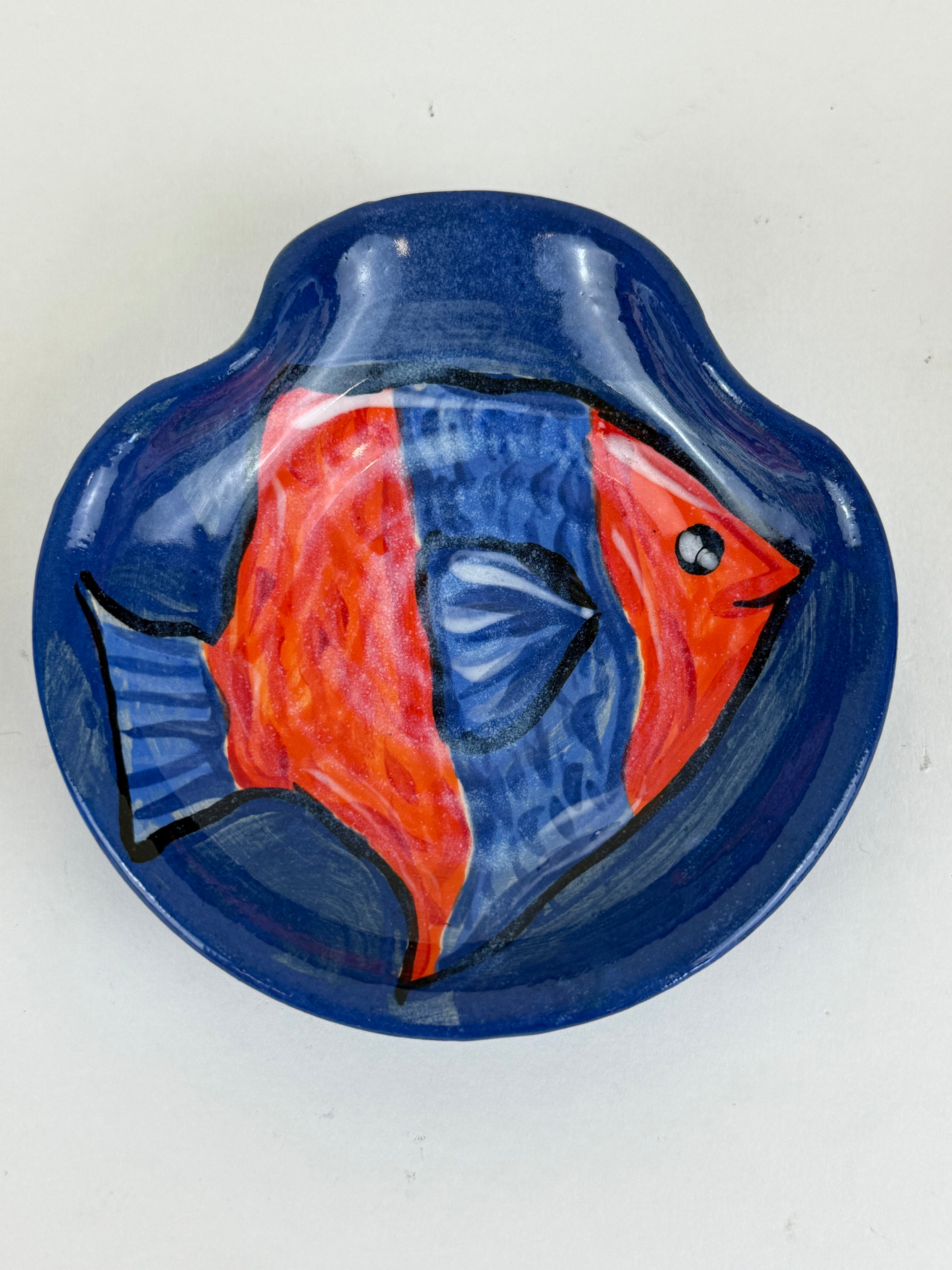 This Dish has been thrown out of SWE clay and decorated in underglaze colours with a clear glaze.