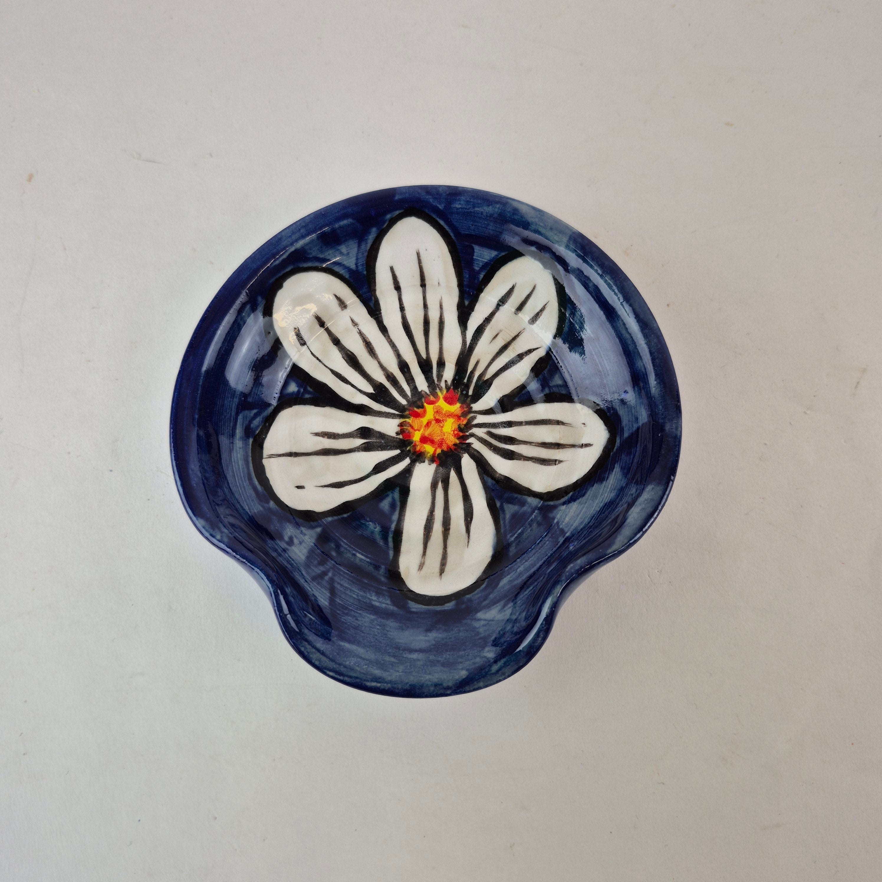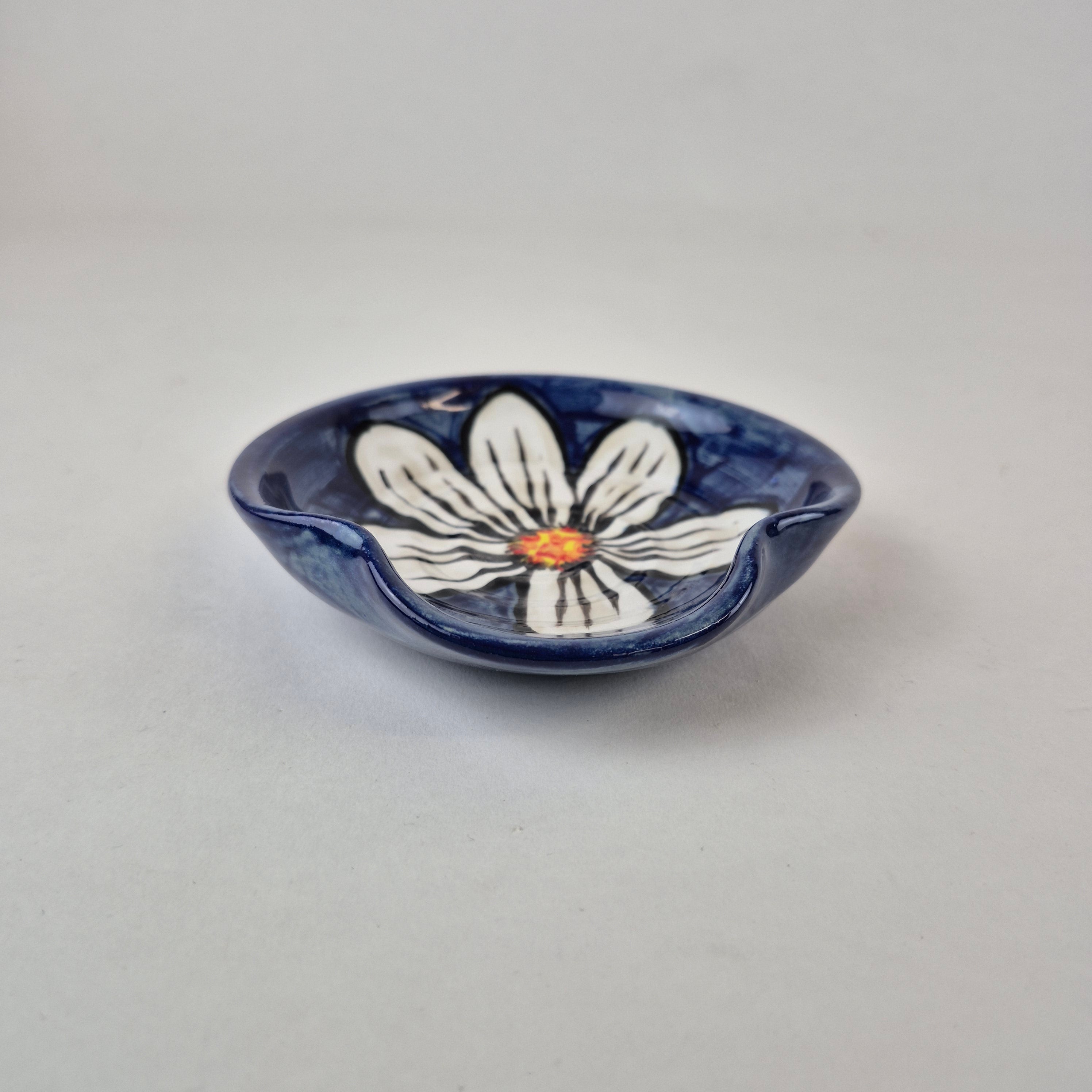 This Dish has been thrown out of SWE clay and decorated in underglaze colours with a clear glaze.