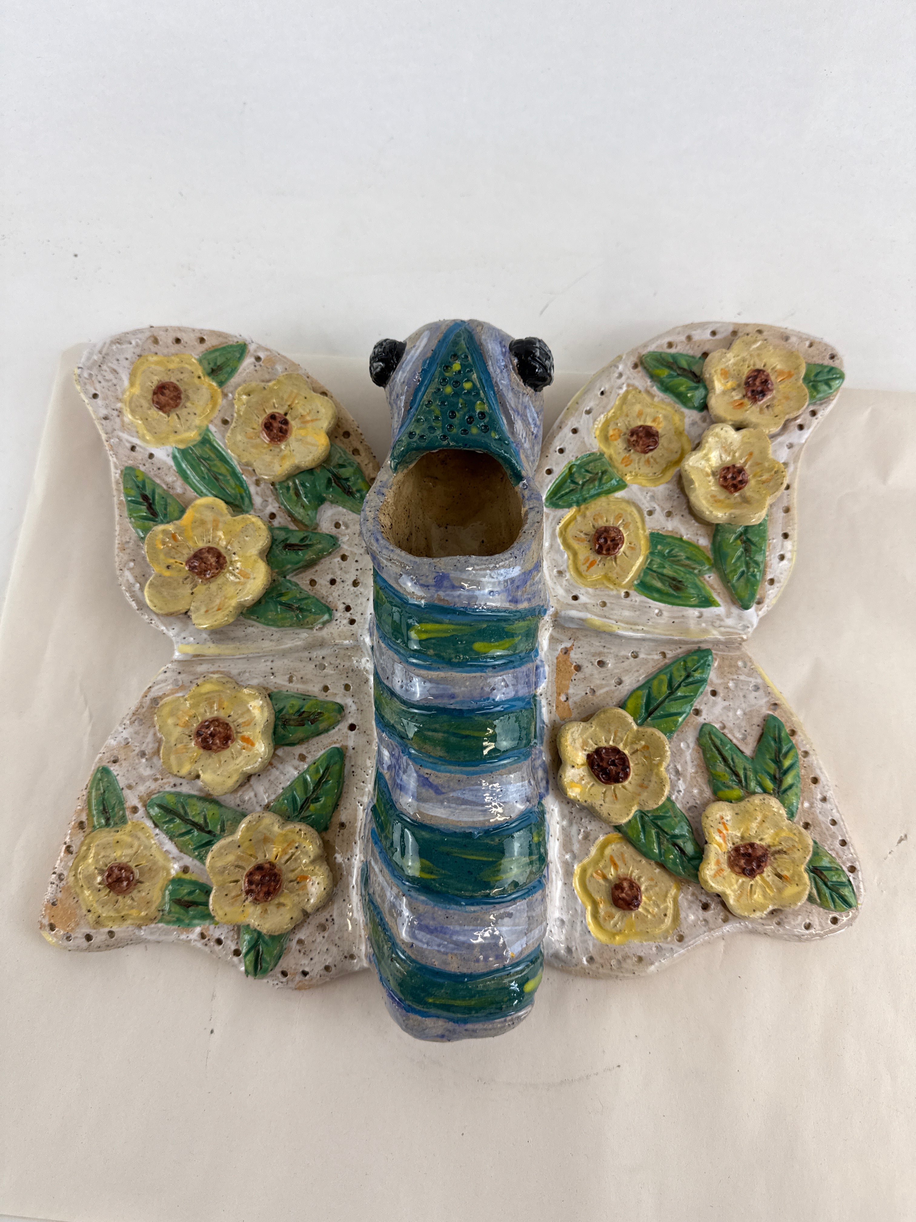 Hand Built out of BRT clay and decorated, this piece is suitable for indoor or outdoor use including drainage hole in the bottom of the planter.
