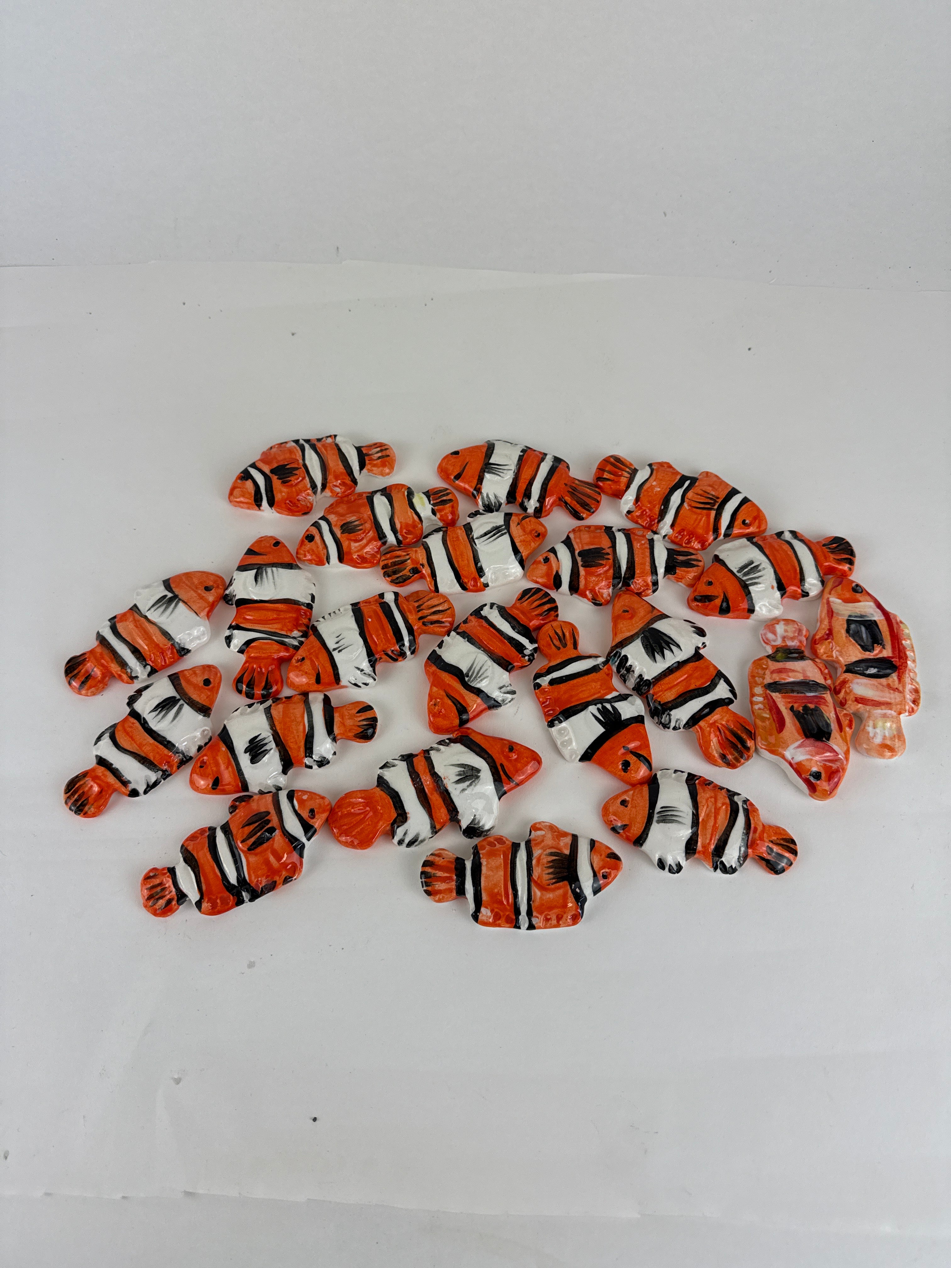 Slip cast and individually hand painted ceramic tiles set, Great for mosaicking any surface.