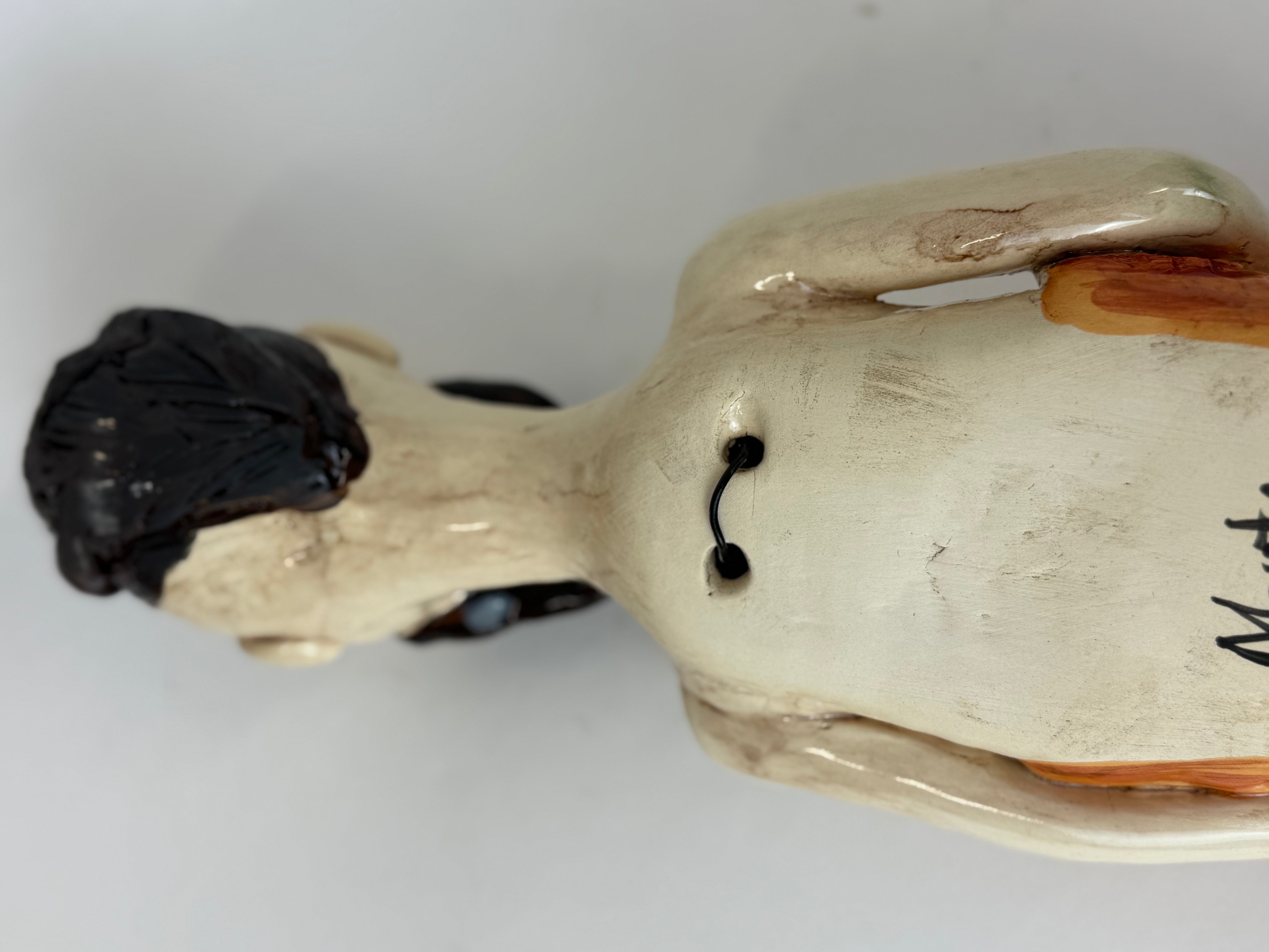 This wall merman handmade and sculpted and then handpainted with coloured underglaze colours and adorned with embellishments and finished with a clear glaze.