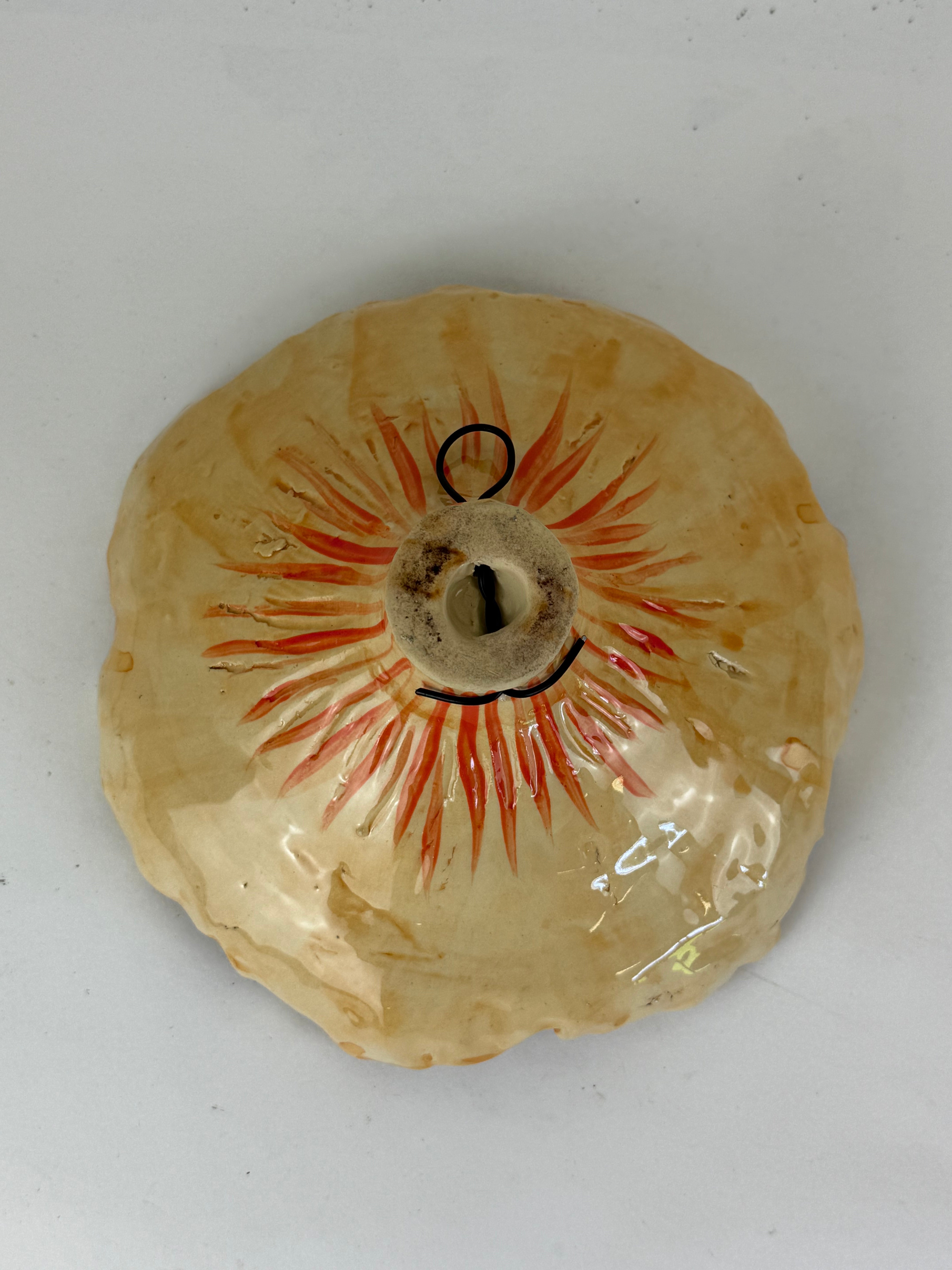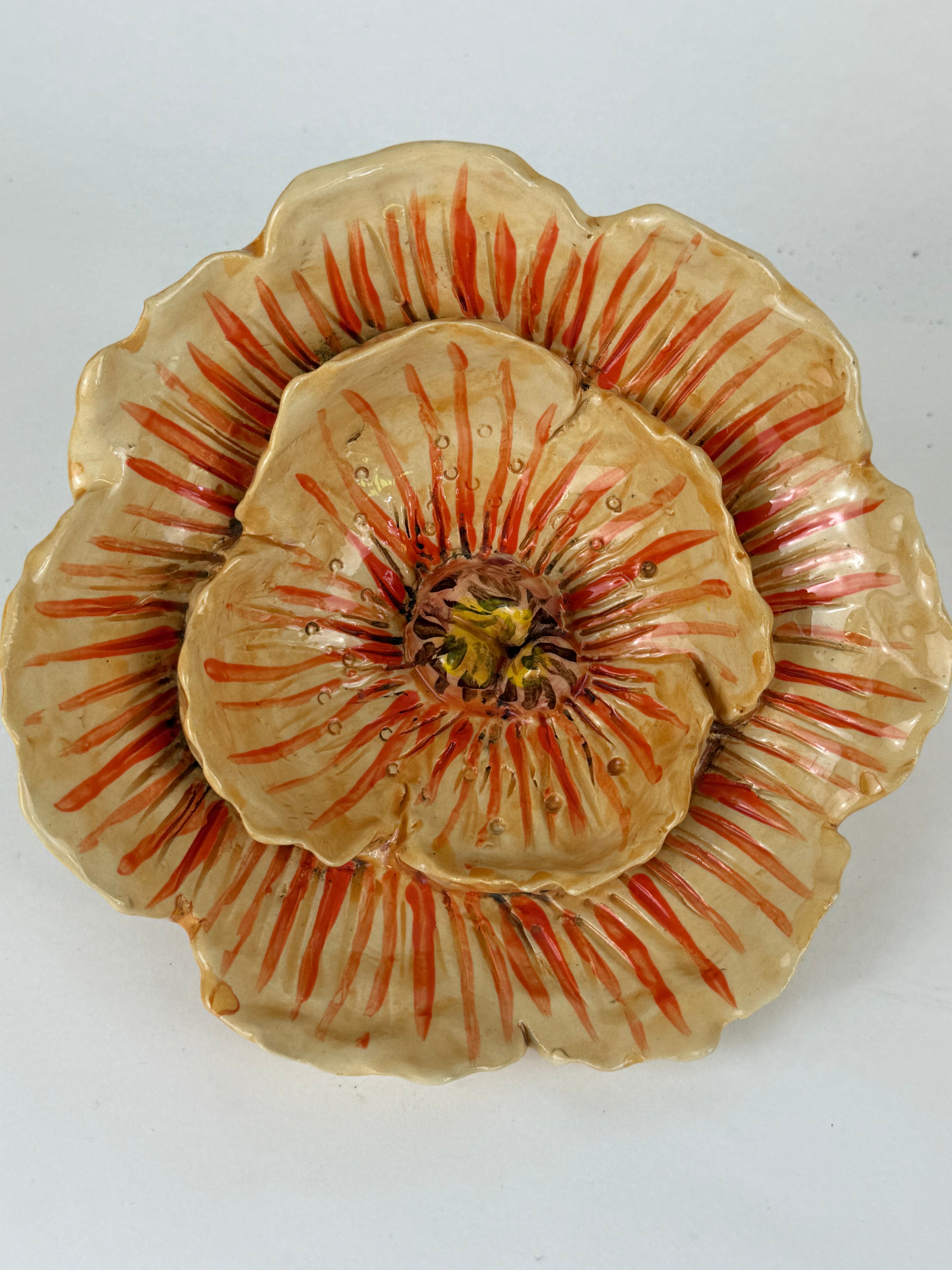 Hand Sculpted and wired hanging Wall Flower made from SWE and clay and glazed in Transparent Green Glaze.