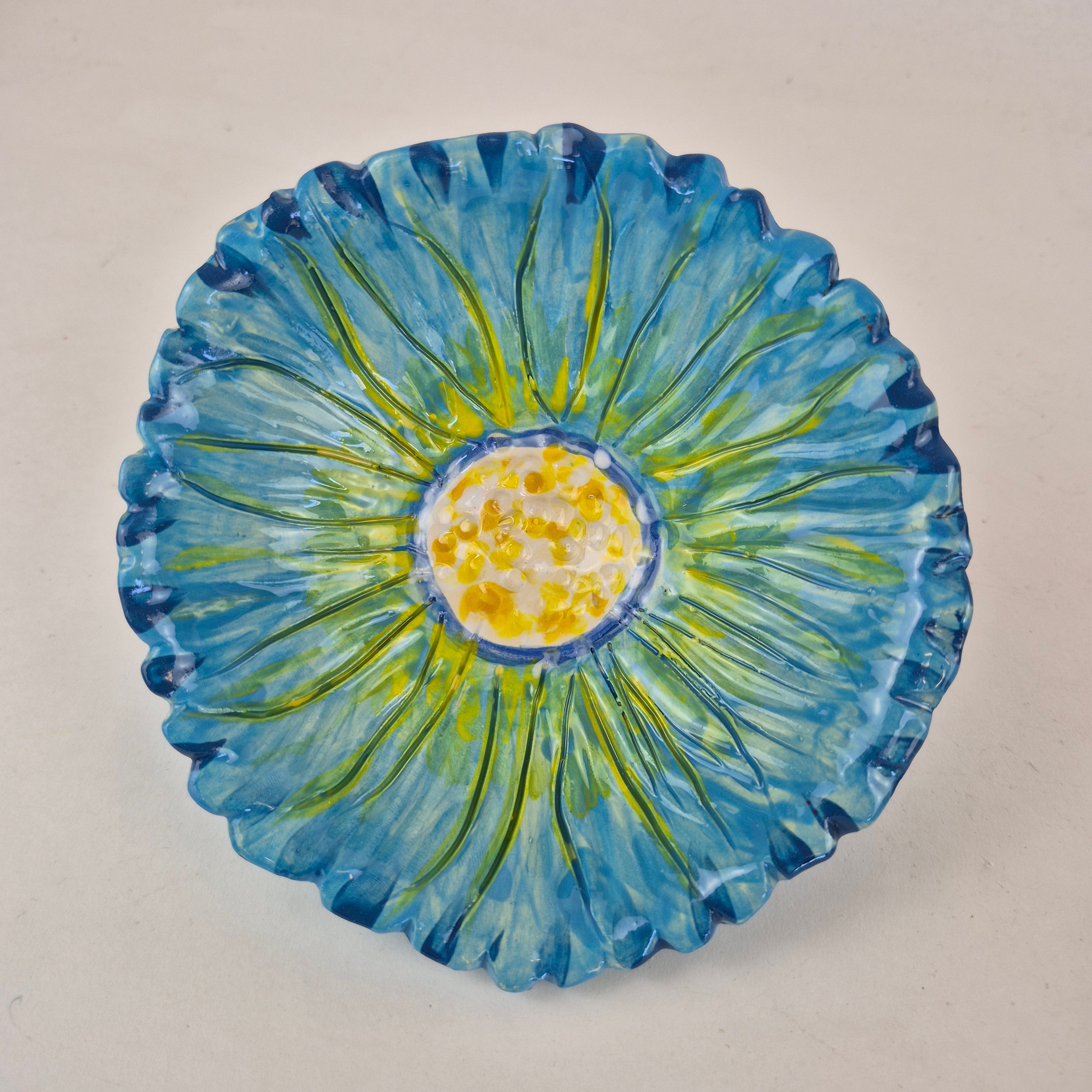 Hand Sculpted and wired hanging Wall Flower made from SWE and clay and glazed in Transparent Green Glaze.