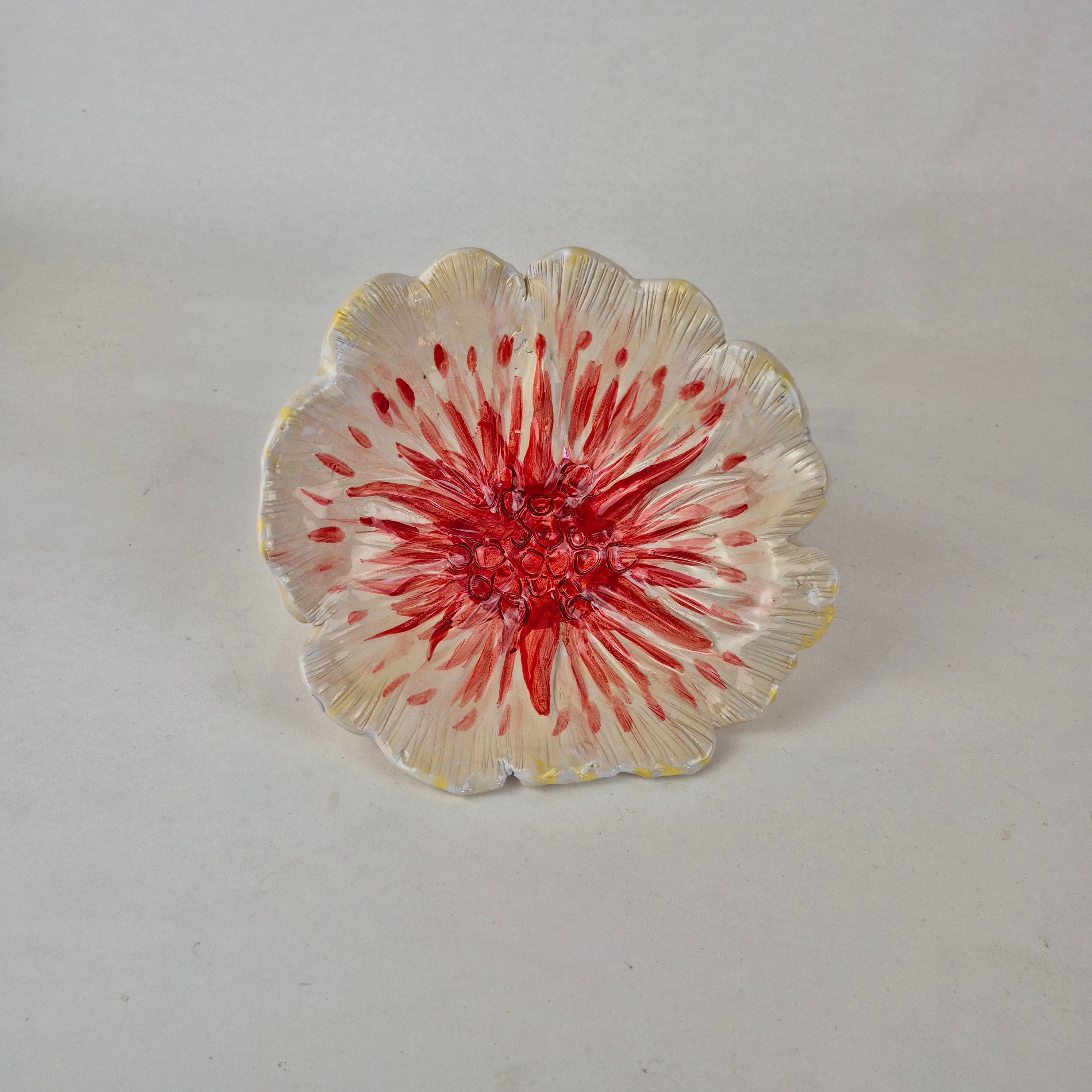 Hand Sculpted and wired hanging Wall Flower made from SWE and clay and decorated in under glaze