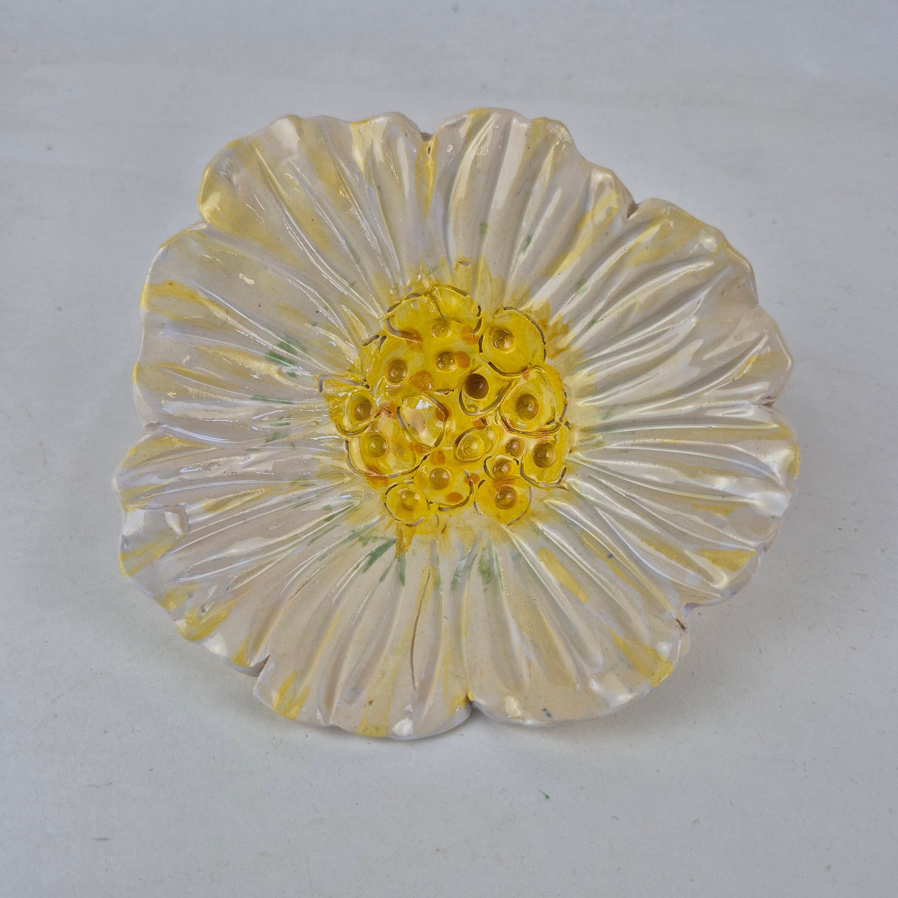 Hand Sculpted and wired hanging Wall Flower made from SWE and clay and glazed in Transparent Green Glaze.