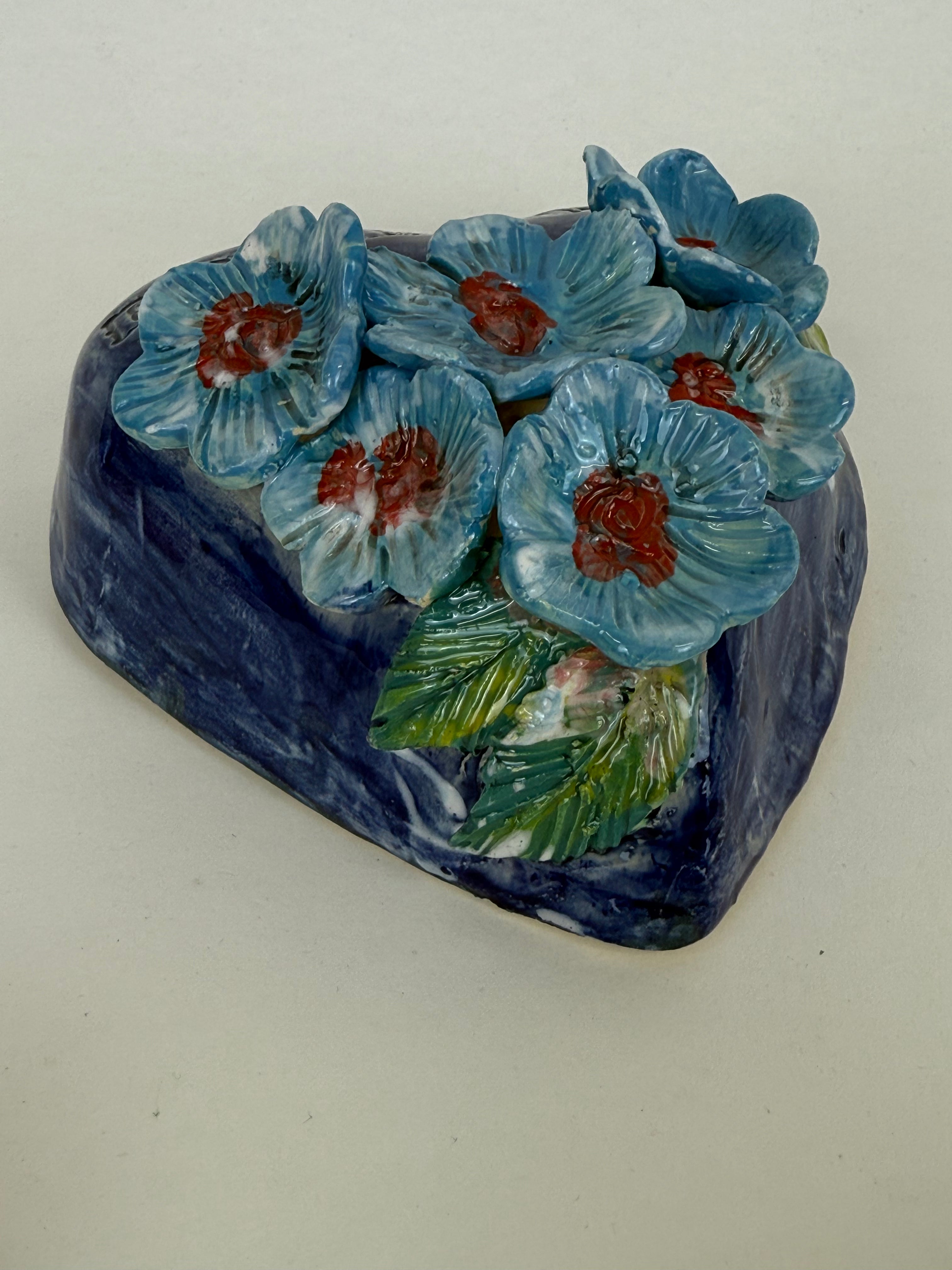 Hand Sculpted and wired hanging Wall Heart made from SWE and clay and decorated in under glaze.