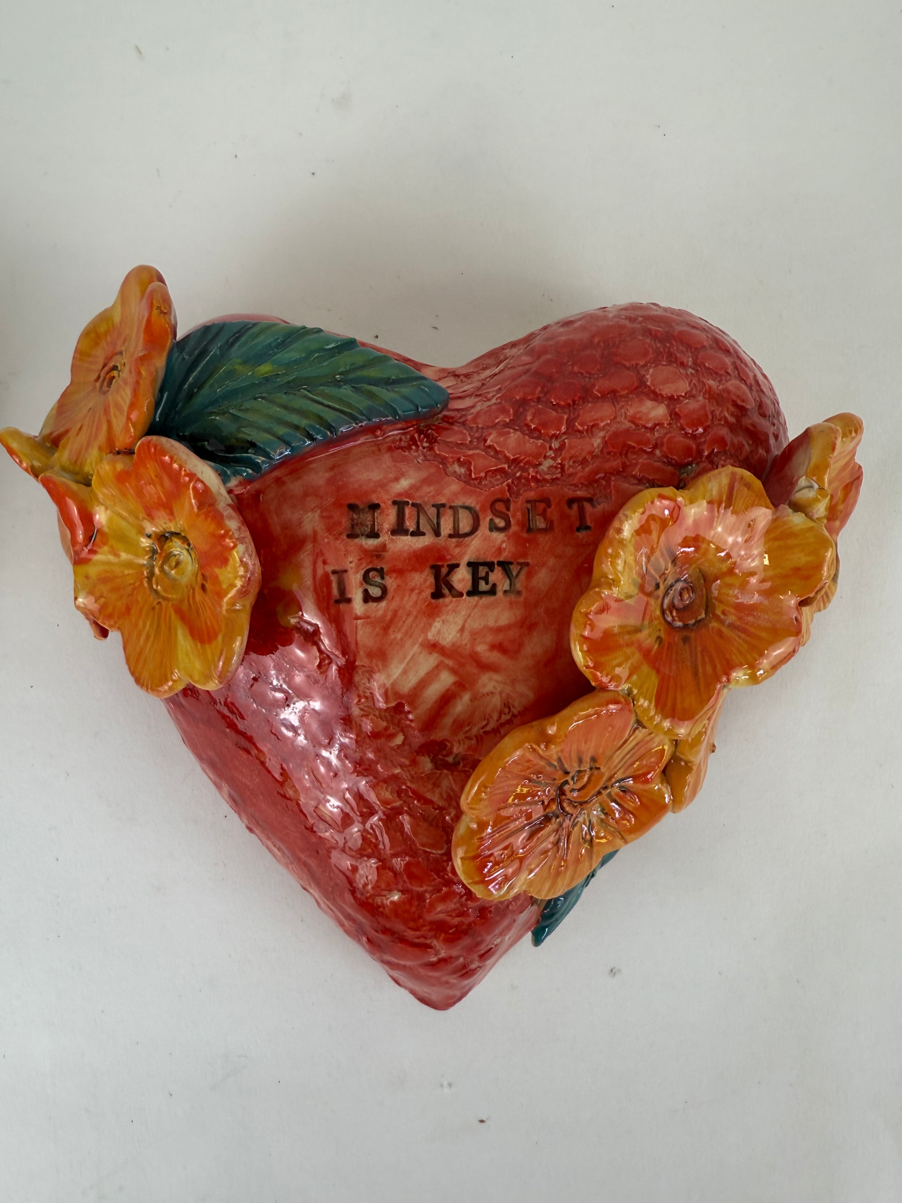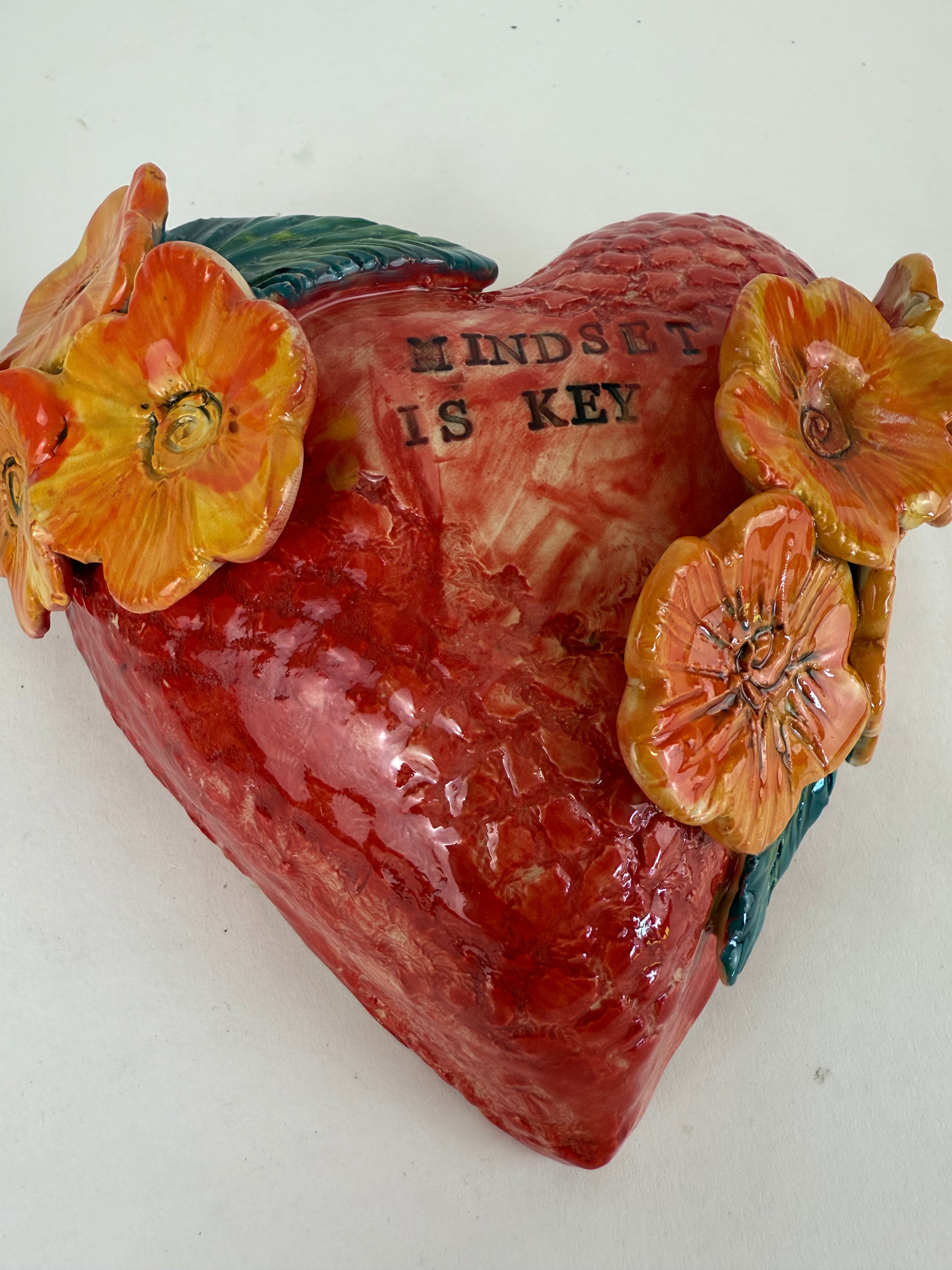 Hand Sculpted and wired hanging Wall Heart made from SWE and clay and decorated in under glaze.