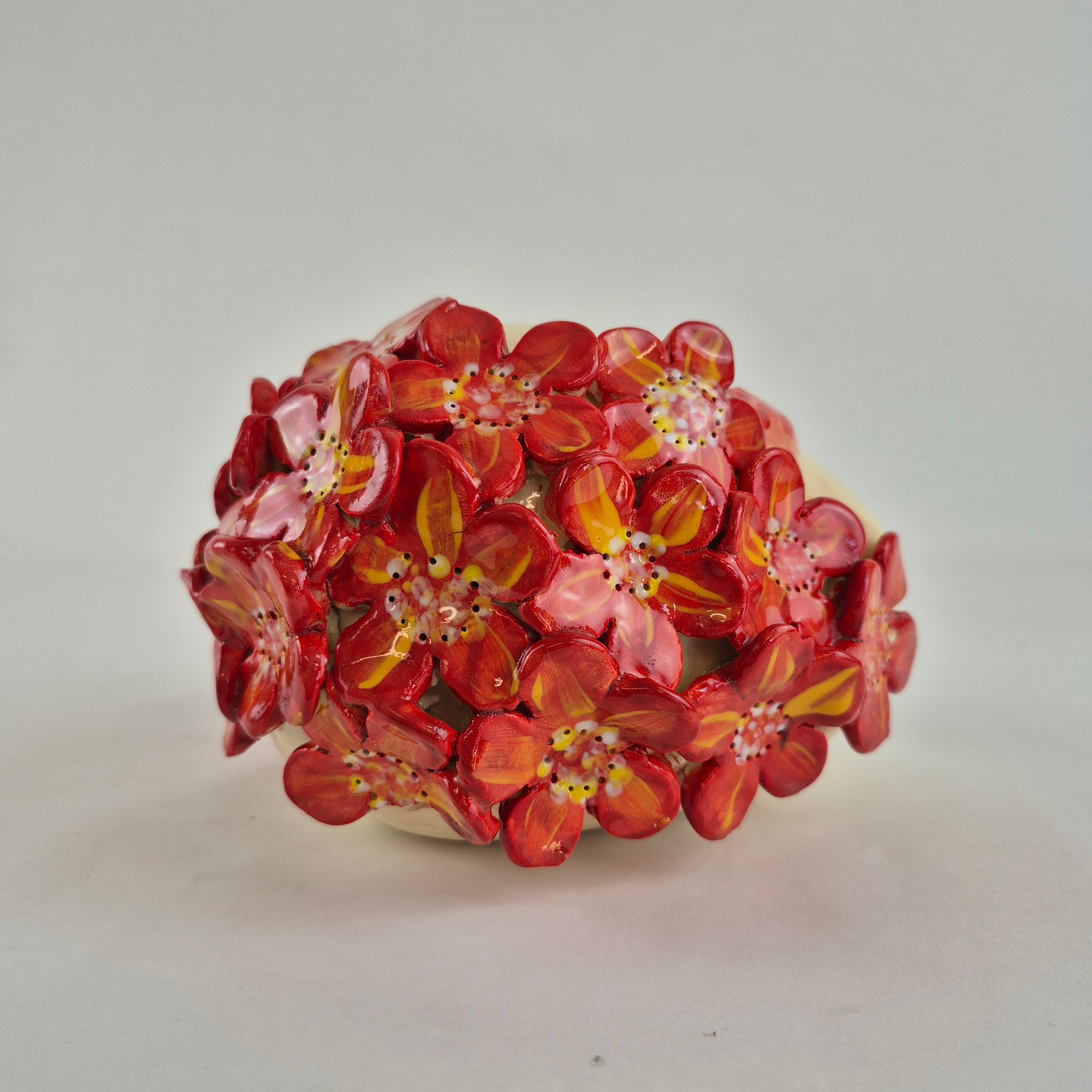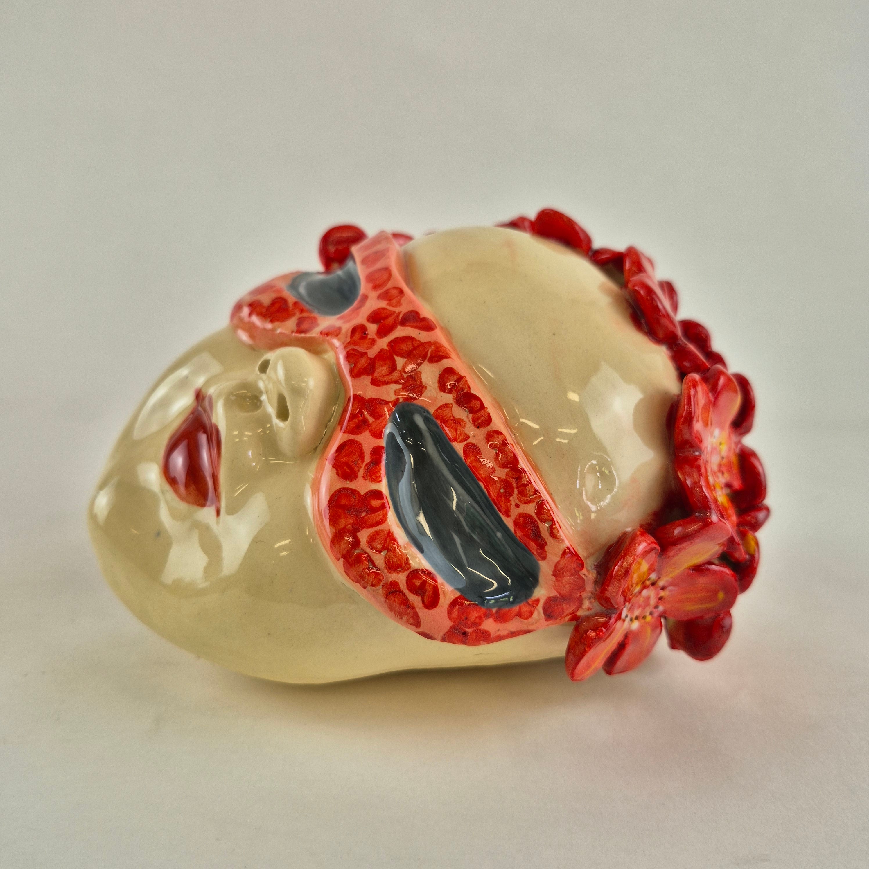 Hand Sculpted made from SWE clay and then handpainted with coloured underglaze colours and adorned with embellishments and finished with a clear glaze.