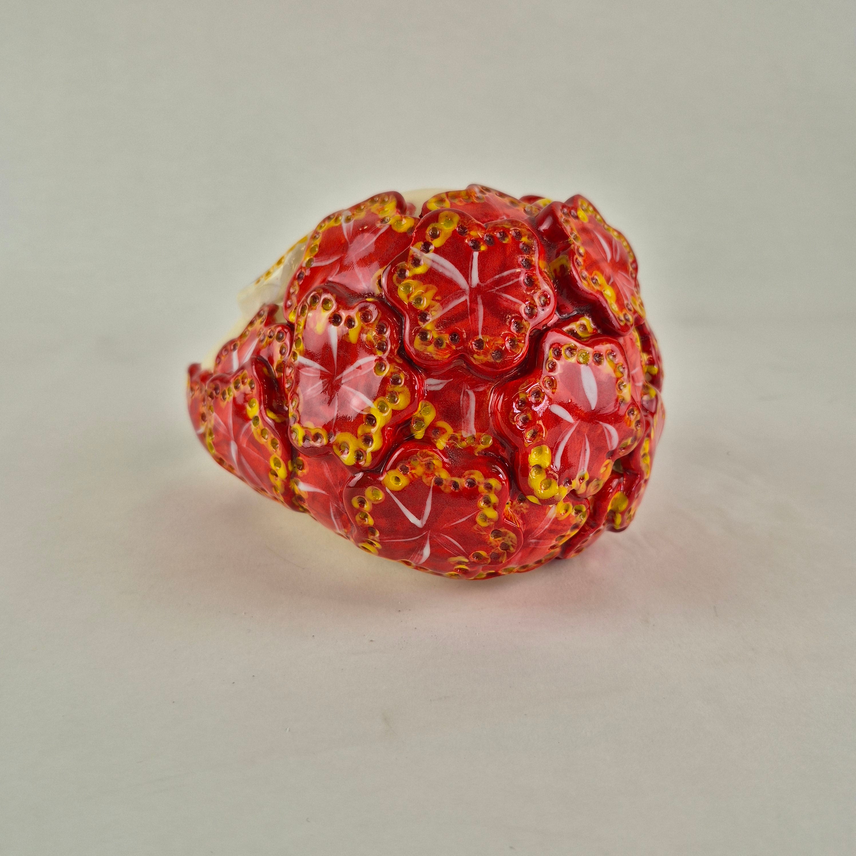 Hand Sculpted made from SWE clay and then handpainted with coloured underglaze colours and adorned with embellishments and finished with a clear glaze.