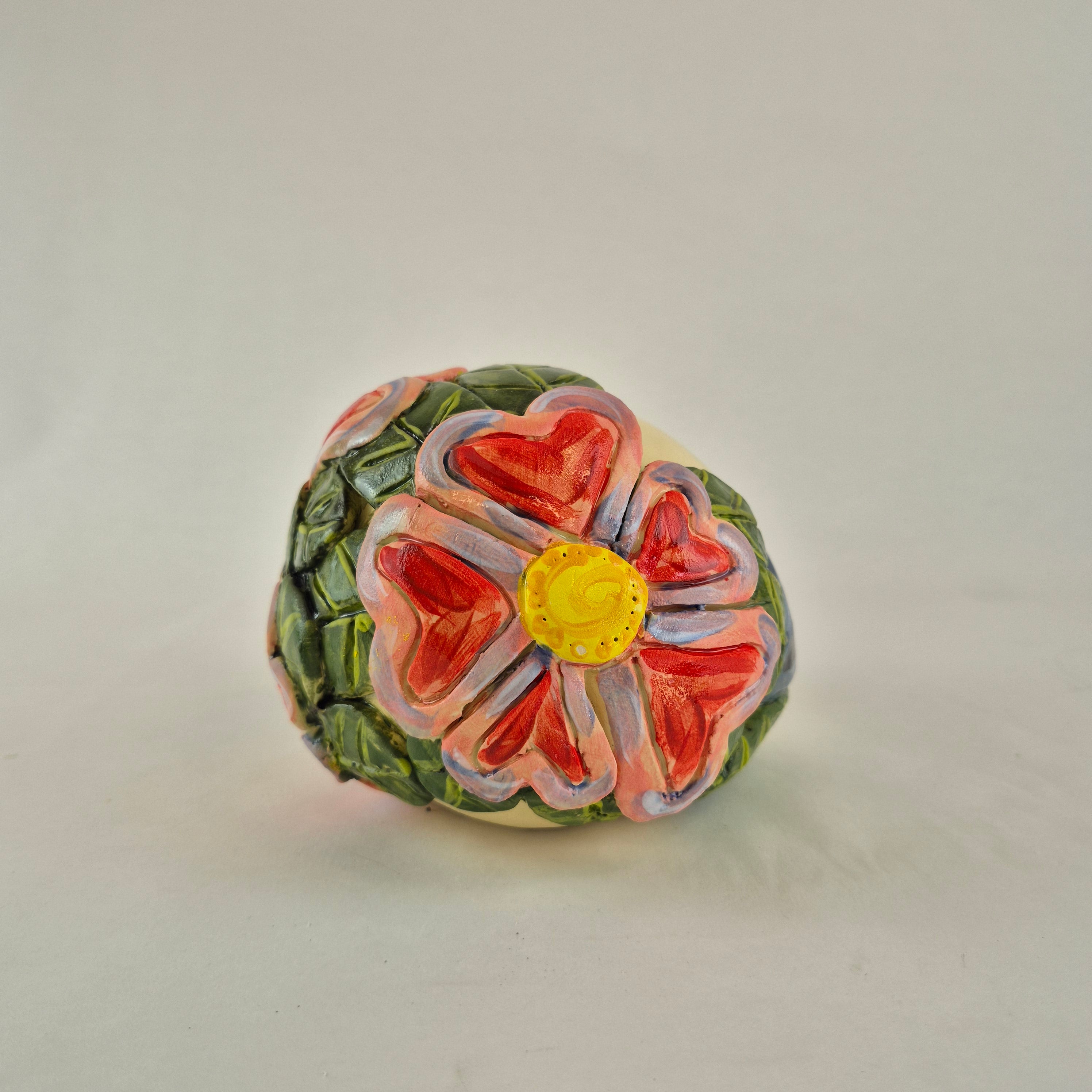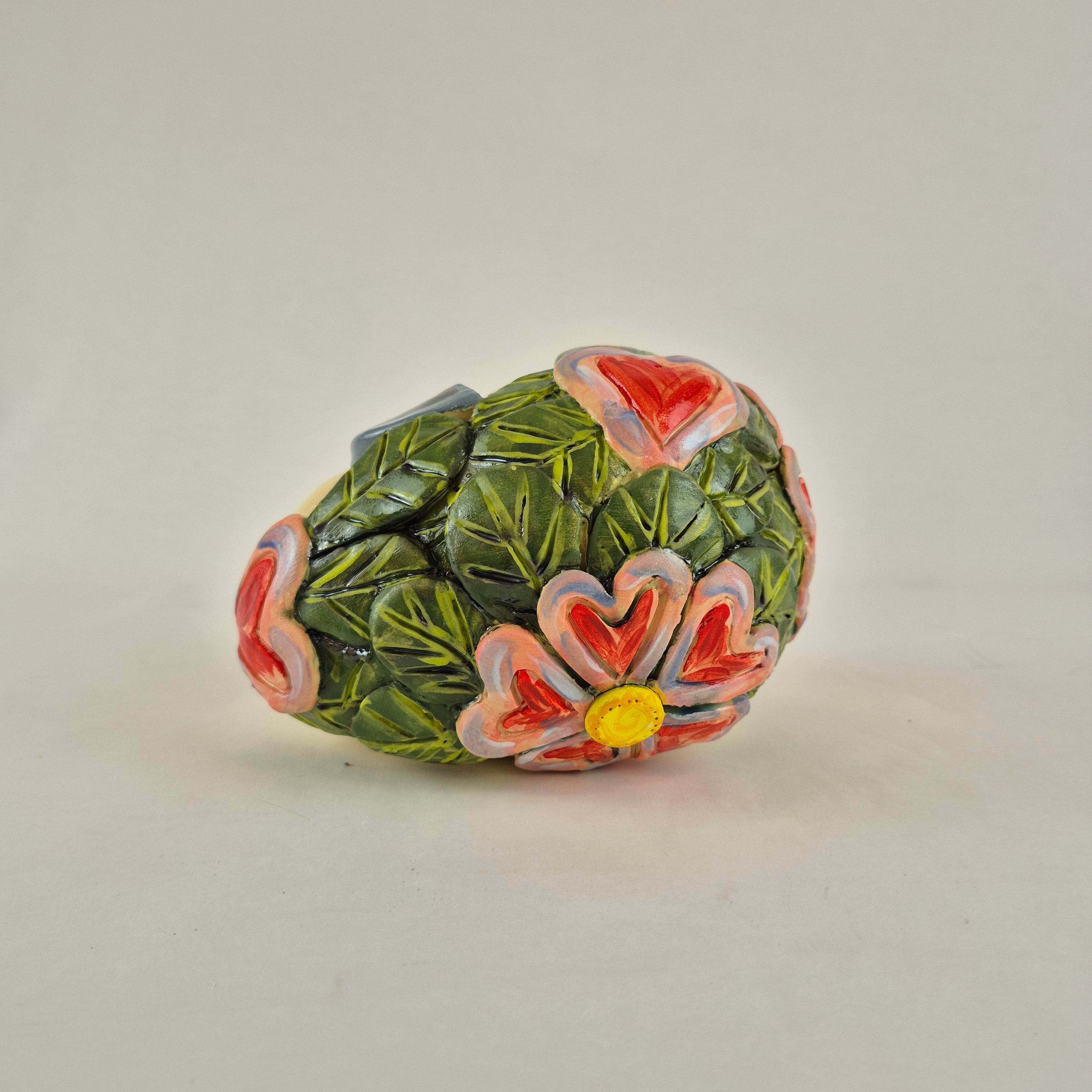 Hand Sculpted made from SWE clay and then handpainted with coloured underglaze colours and adorned with embellishments and finished with a clear glaze.