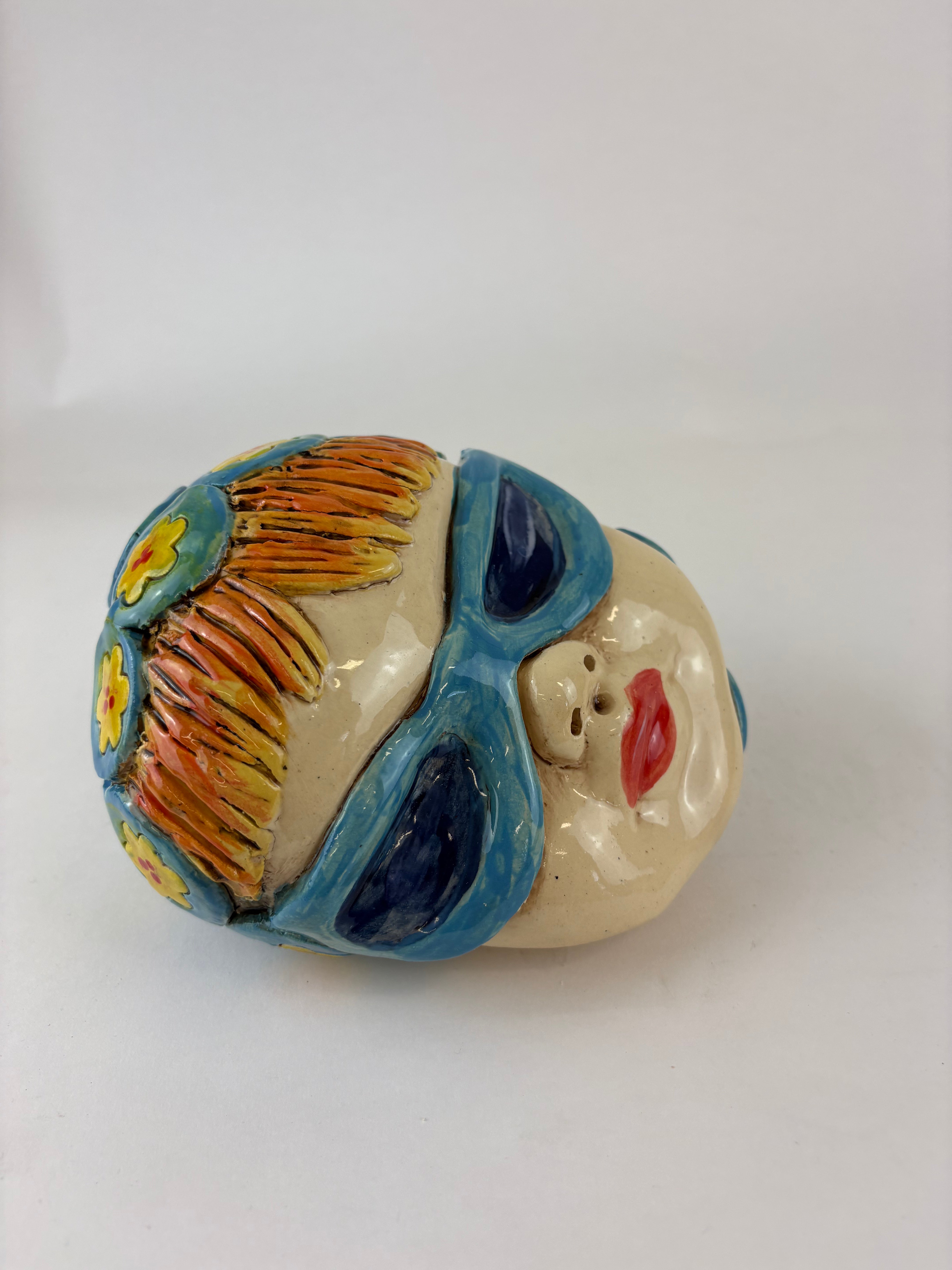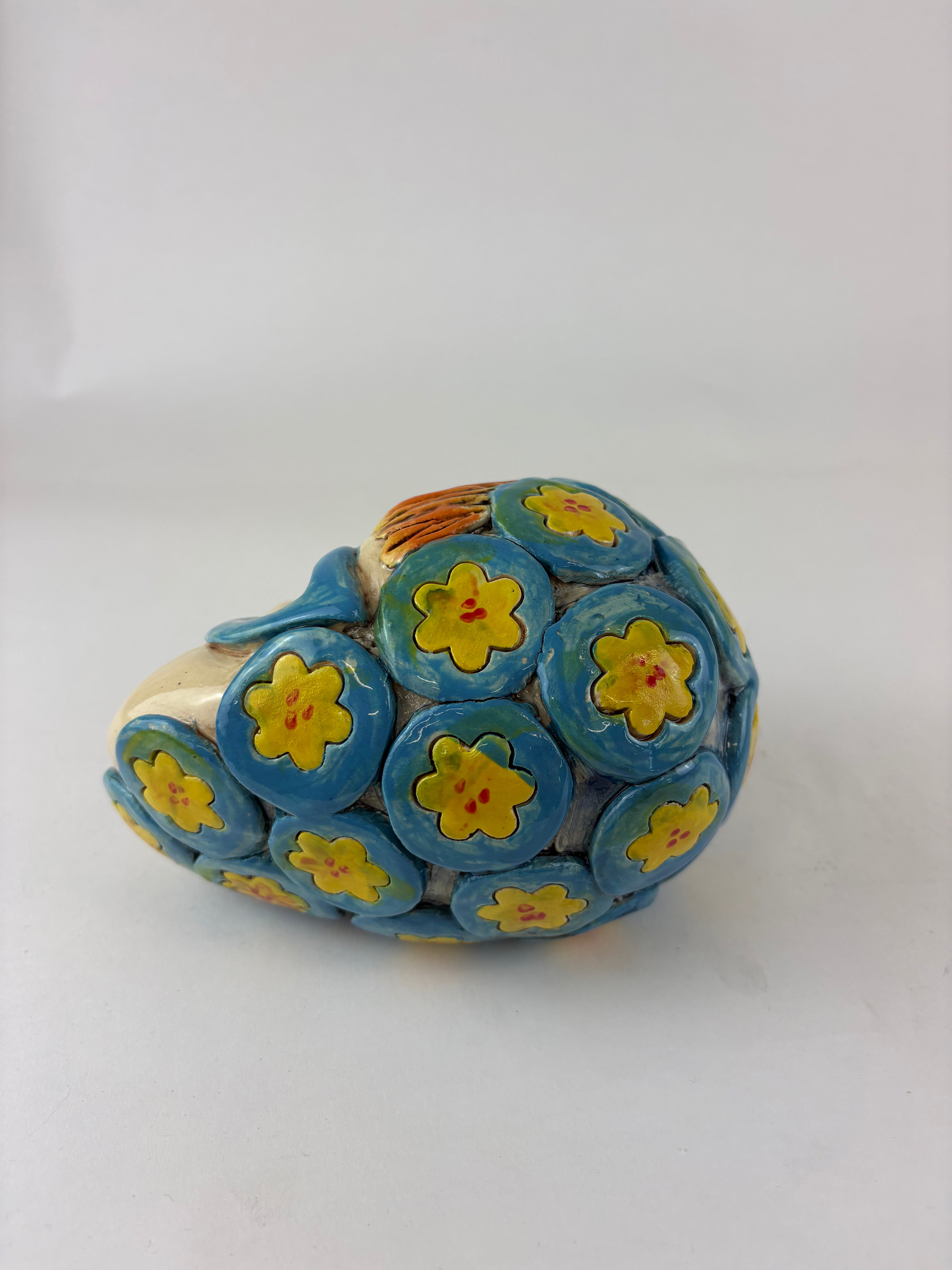 Hand Sculpted made from SWE clay and then handpainted with coloured underglaze colours and adorned with embellishments and finished with a clear glaze.
