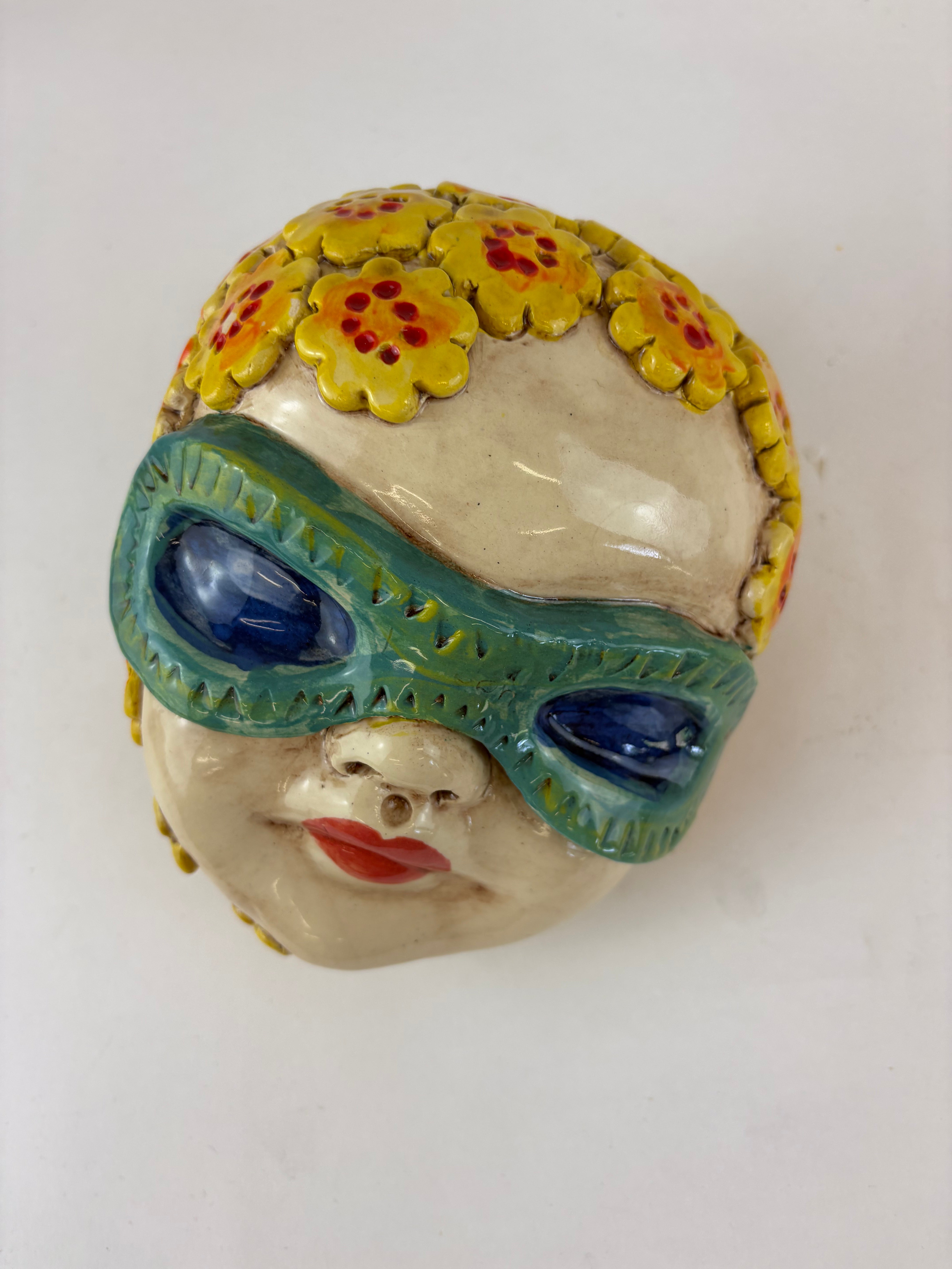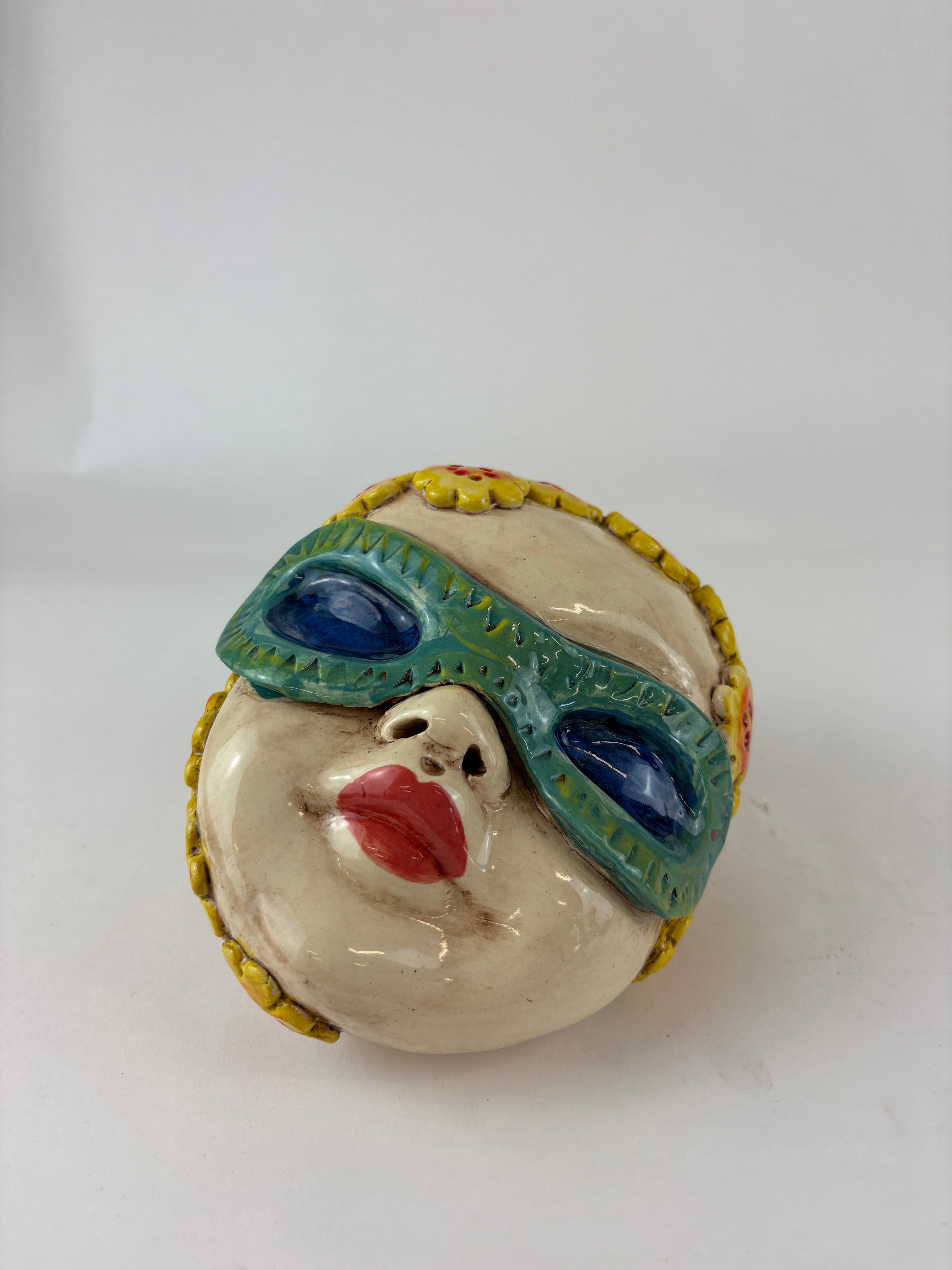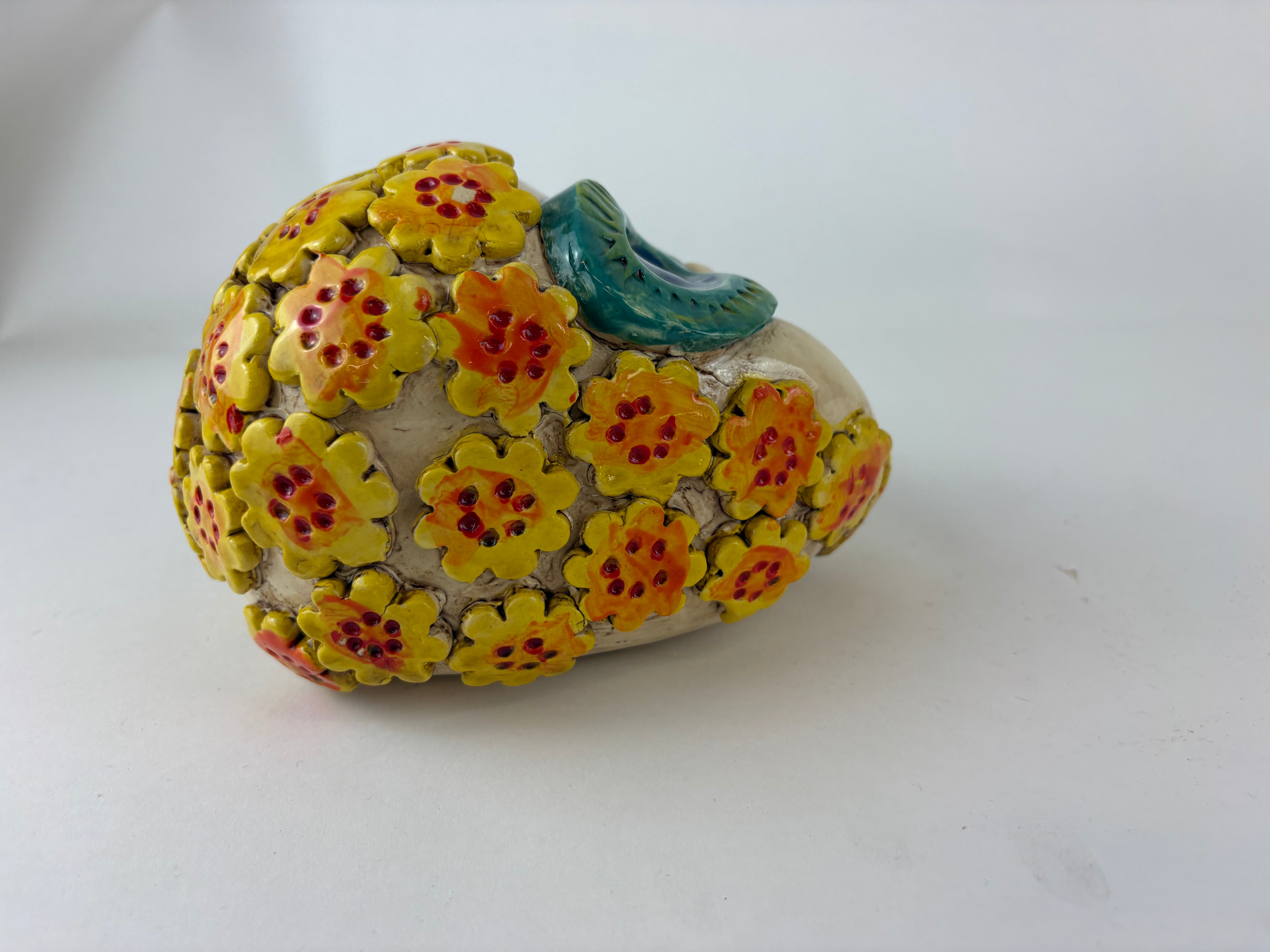 Hand Sculpted made from SWE clay and then handpainted with coloured underglaze colours and adorned with embellishments and finished with a clear glaze.