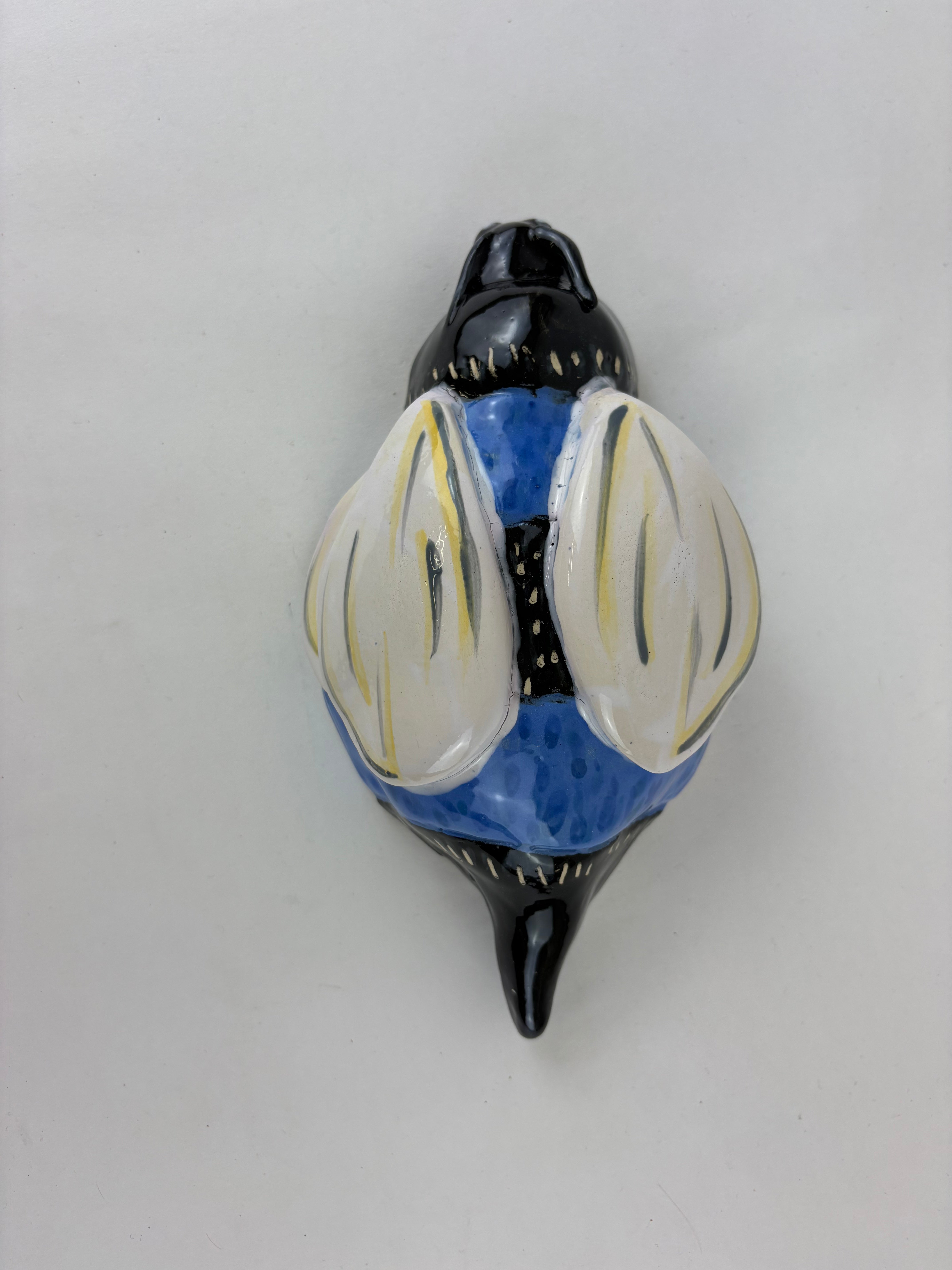 Hand Sculpted and wired hanging Wall Bee made from SWE and clay and glazed in Clear Glaze.