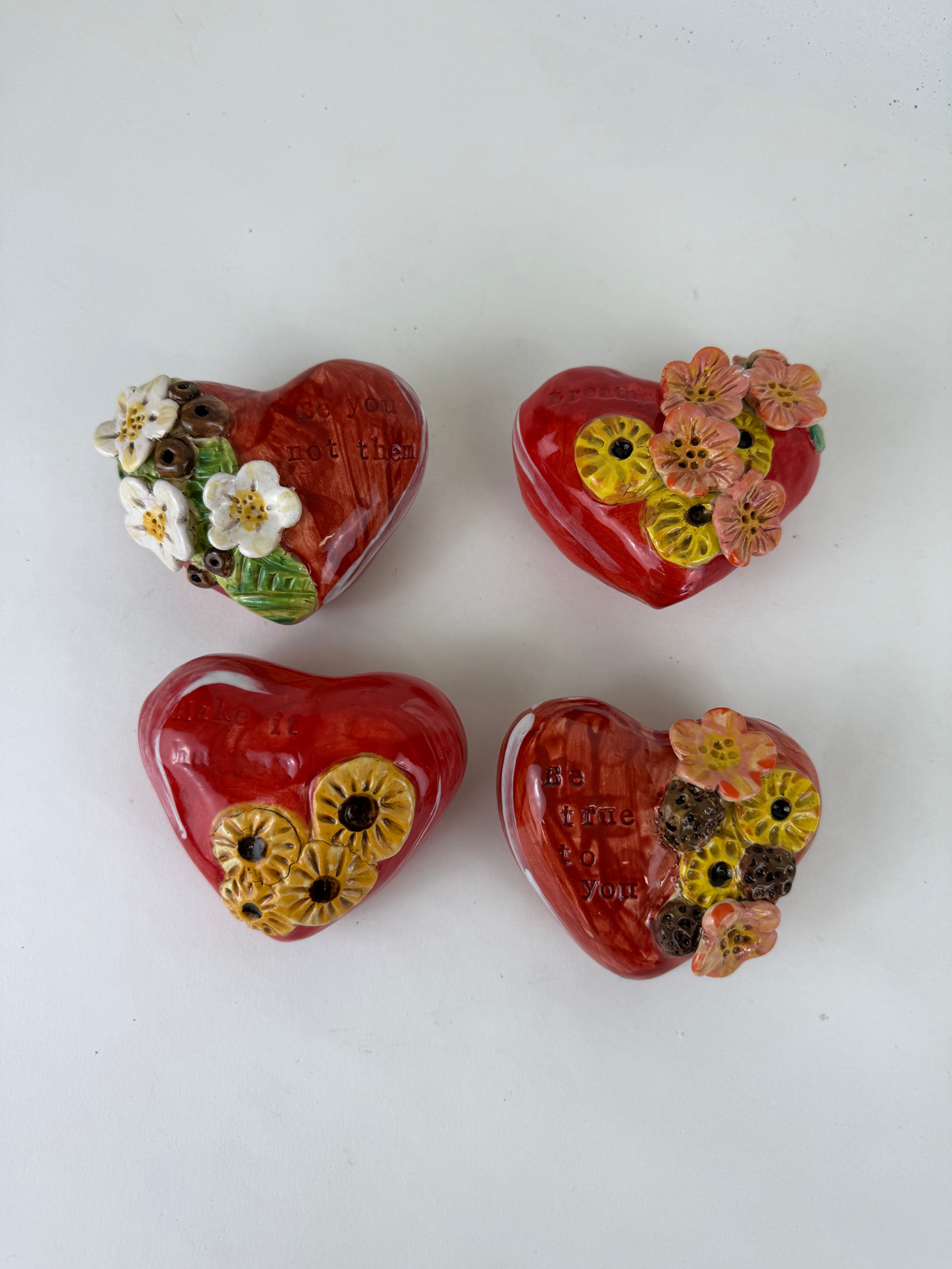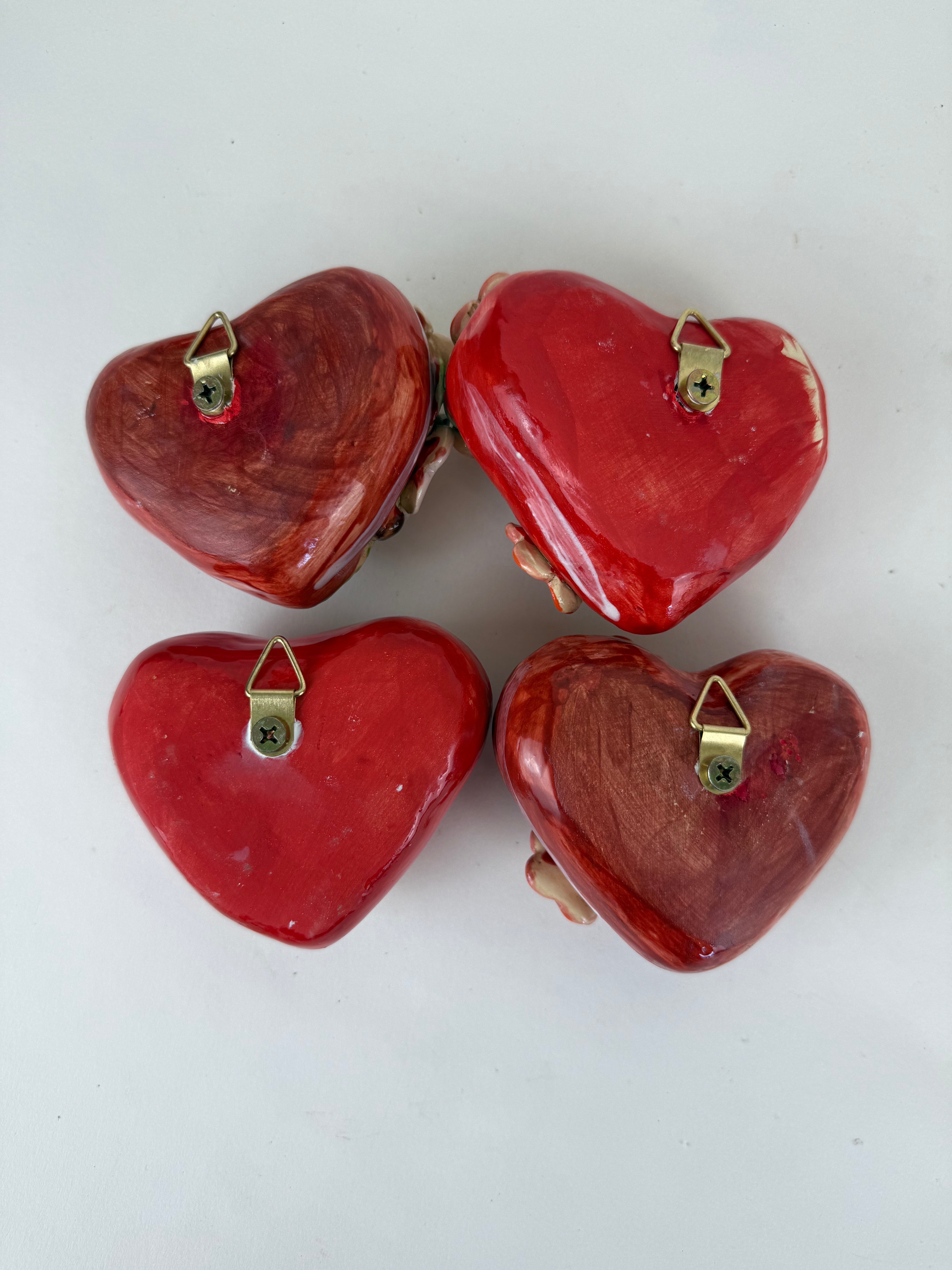 Hand Sculpted Wall Heart made from SWE and clay and decorated in underglaze with a brass hook on back of piece.