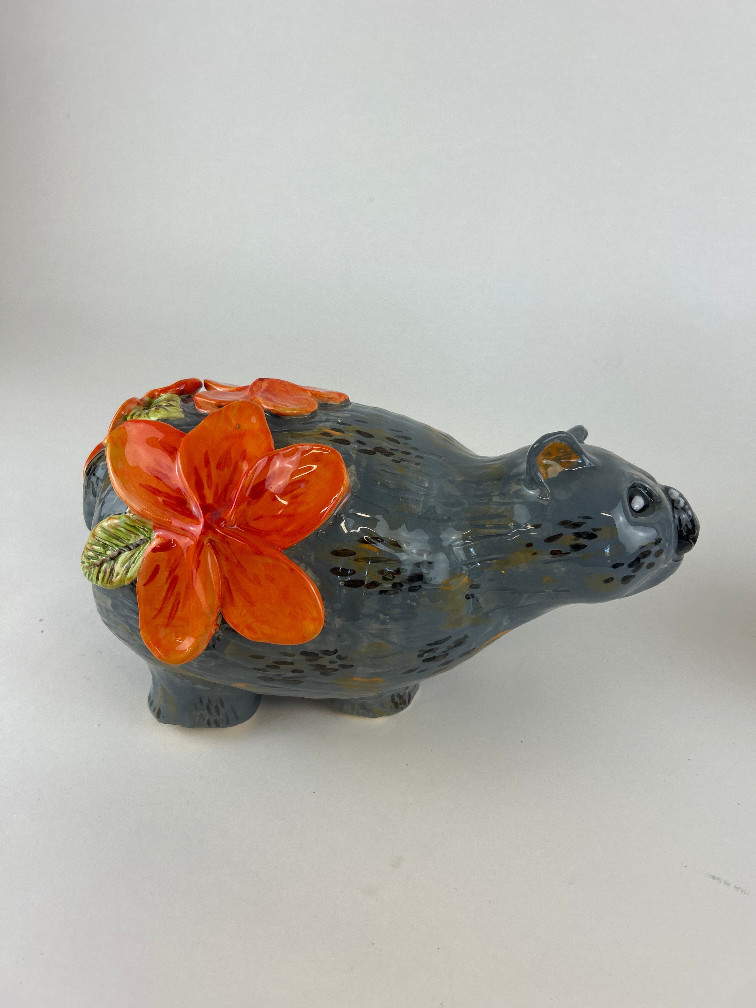 Animal Sculpture - Wombat Orange Flower