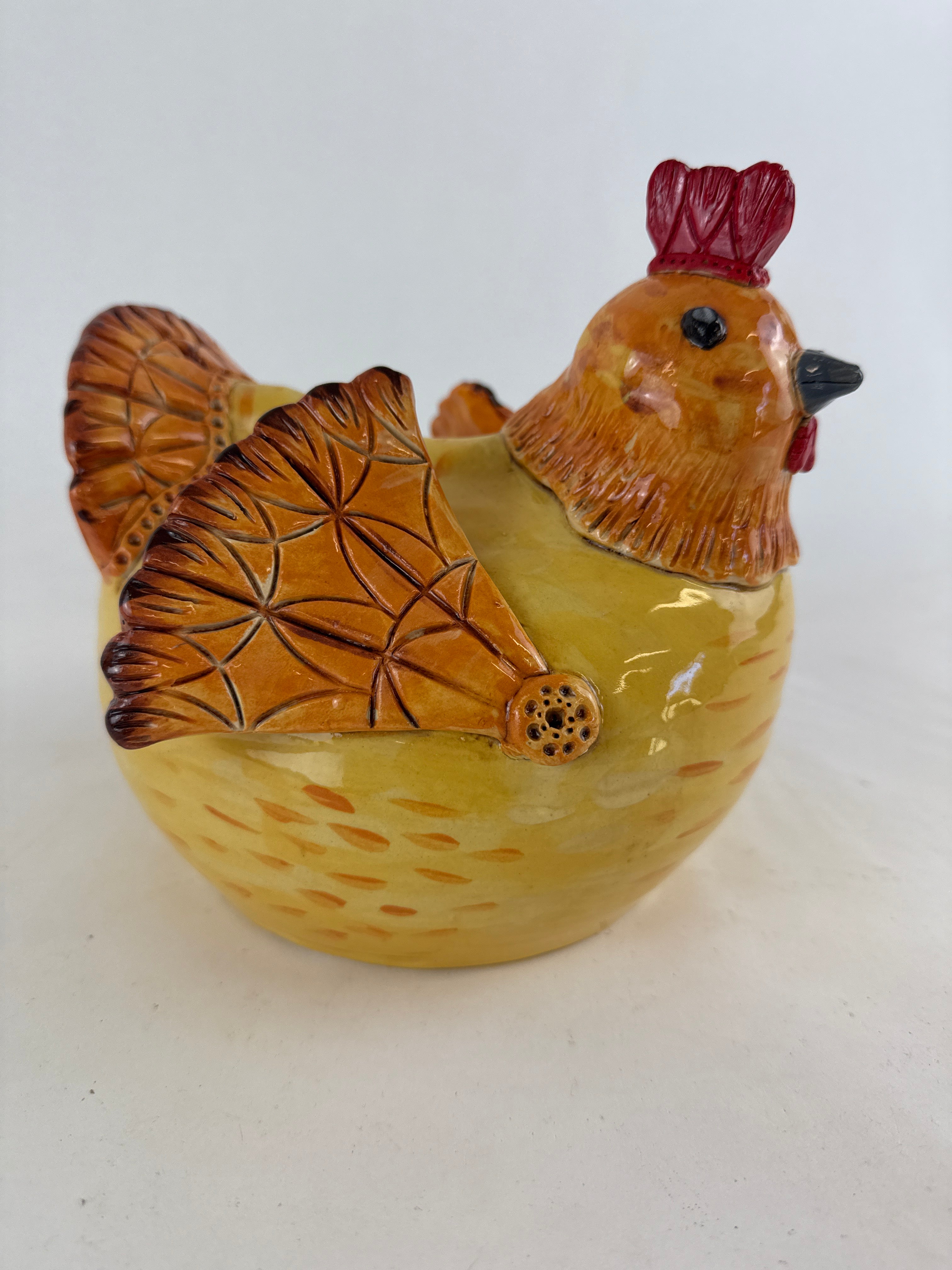 Hand Sculpted and painted suitable for indoor or outdoor. Each chicken has a slightly different expression. We would choose your chicken.