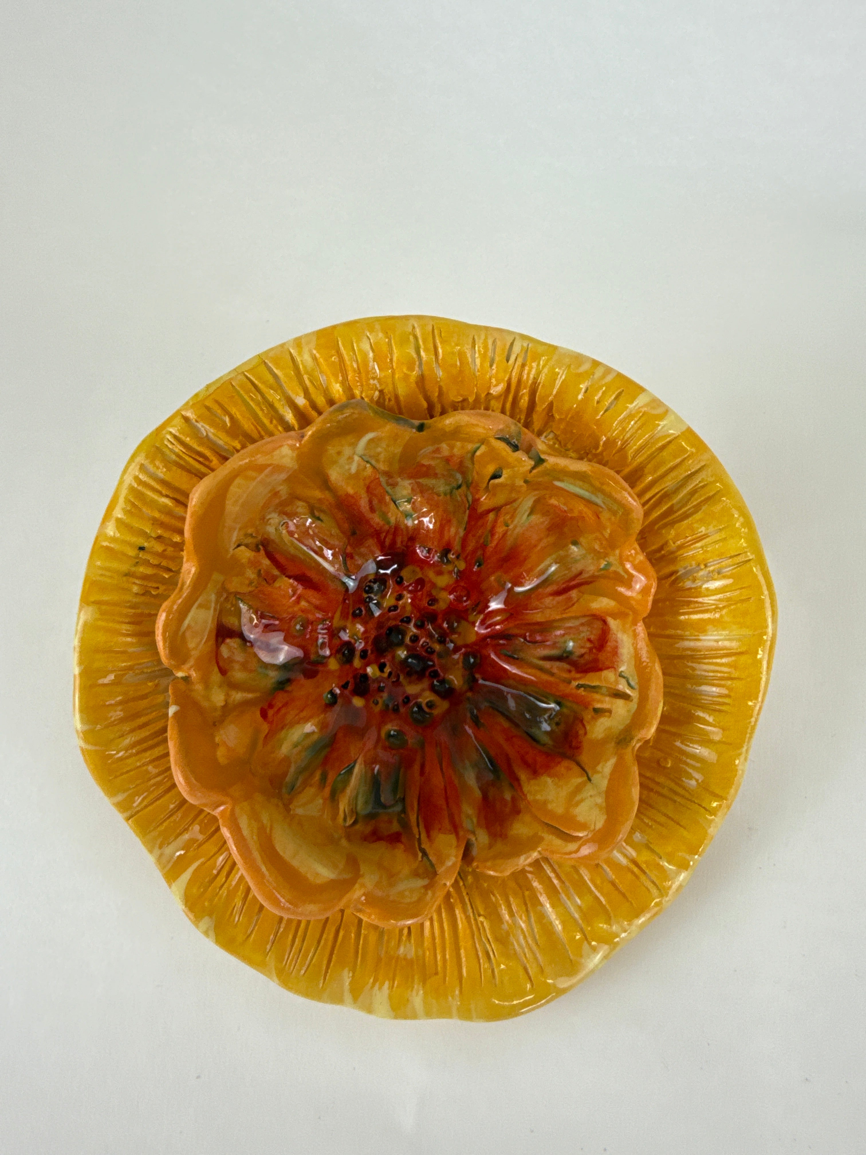 Hand Sculpted and wired hanging Wall Flower made from SWE and clay and decorated in under glaze
